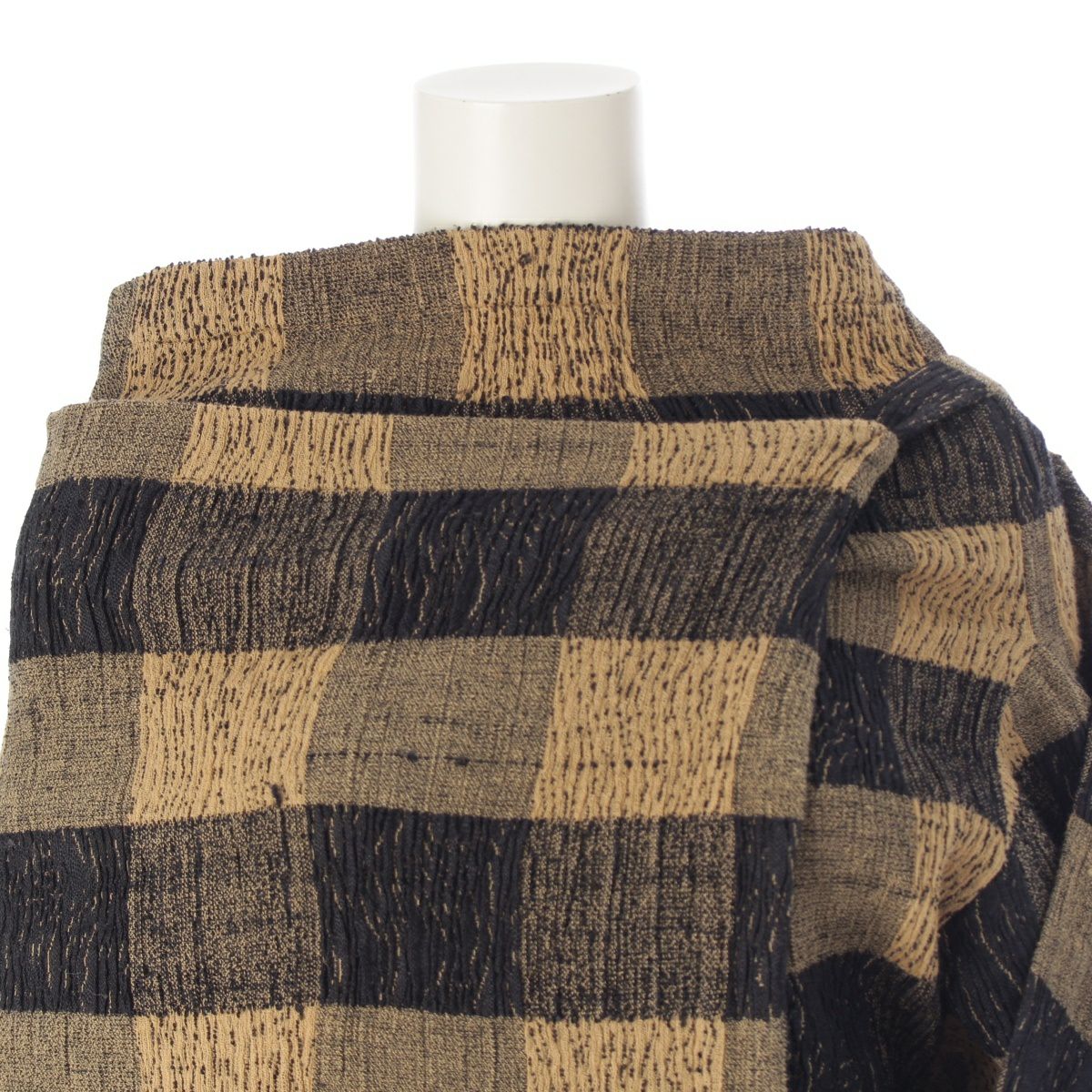 イッセイミヤケ 84年 80s 袈裟 シルク×コットン×ナイロン チェック デザイン 3ピース セットアップ トップス 羽織 スカート ブラウン系 9