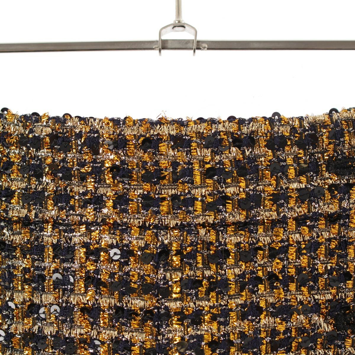 シャネル 18A ポリエステル ナイロン シルク ハンブルクボタン ツイード スカート ボトムス P59406 ゴールド ブラック ネイビー 38