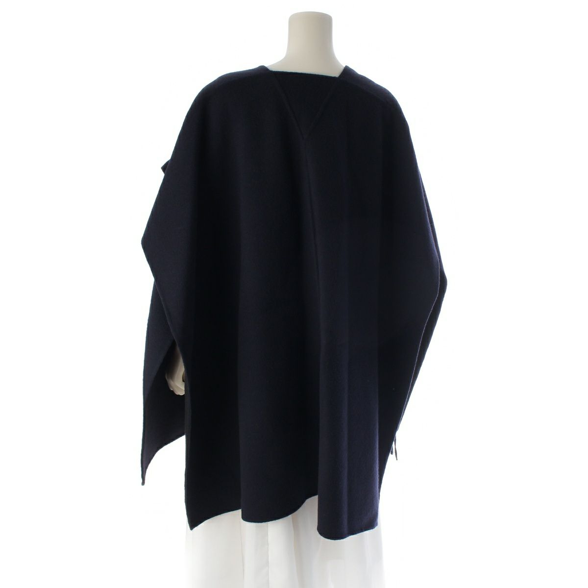 ドゥロワー ウール フリンジ リバーシブル バイカラー ポンチョ ラップケープ コート トップス 6525-299-0881 ネイビー ブラック