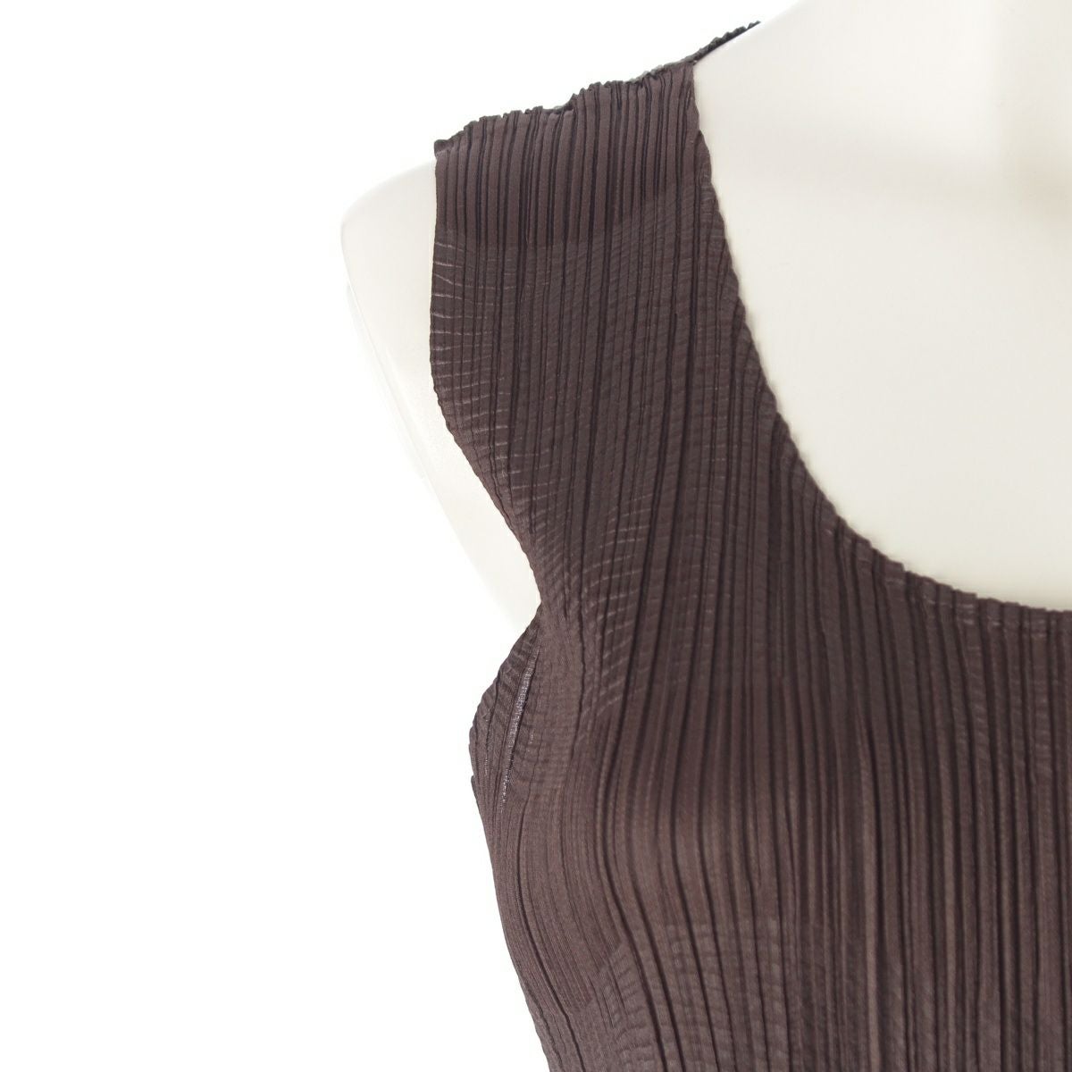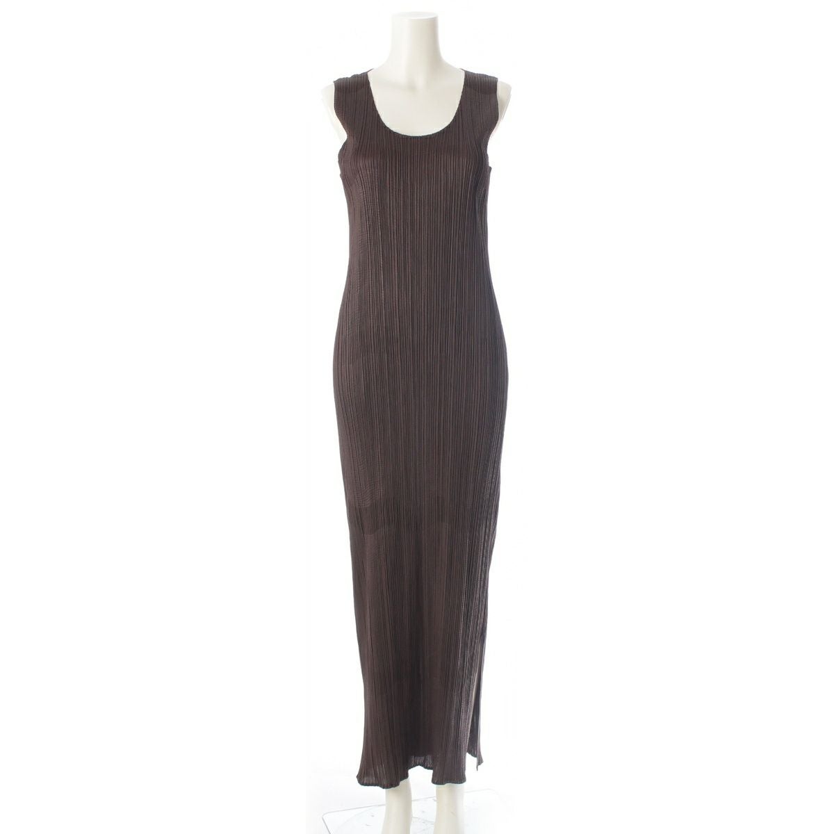 プリーツプリーズ イッセイミヤケ 99AW ラインデザイン ノースリーブ ロング ワンピース ドレス PP94-JH632 チョコレート ブラウン 4