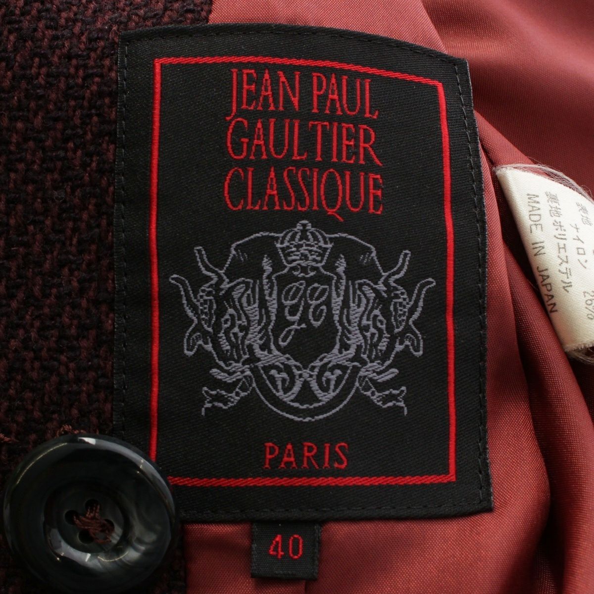 ジャンポールゴルチエ クラシック ウール ナイロン アウター スーパーロングコート バーガンディ ワインレッド 40