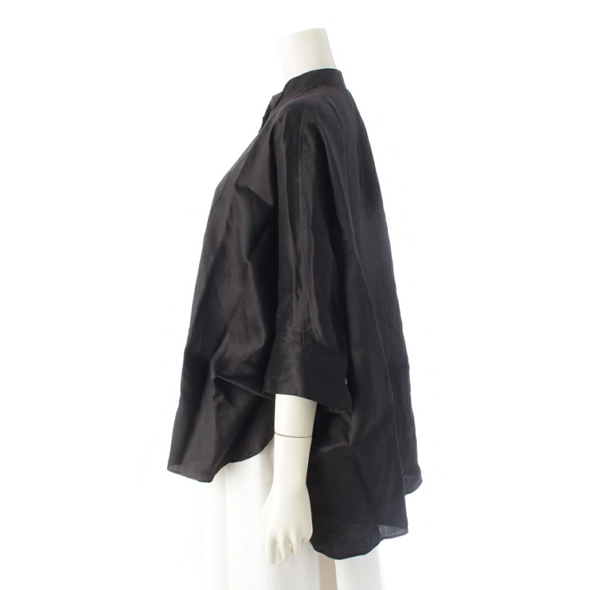 エブール リネン ロゴ刺繍 ラミーサテン ブラウス 4110700537 ブラック 38