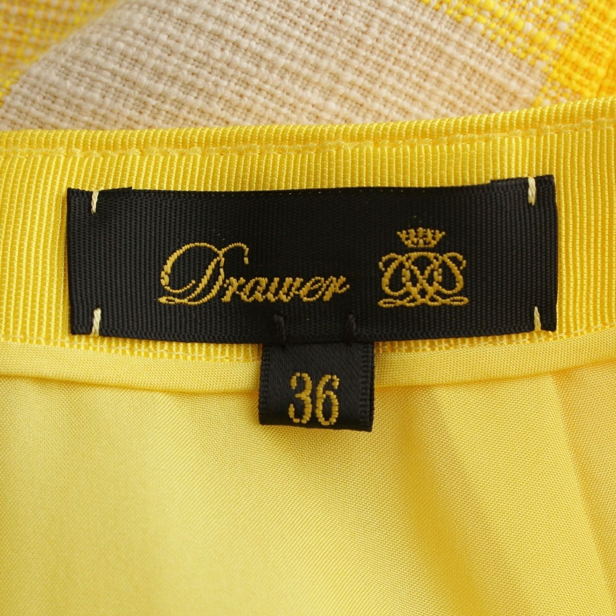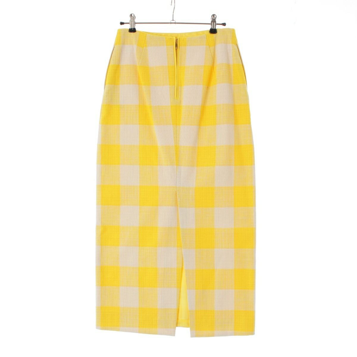 ドゥロワー 23SS コットン バックスリット ブロックチェック タイト ロング スカート ボトムス 6524-299-1718 イエロー ホワイト 36