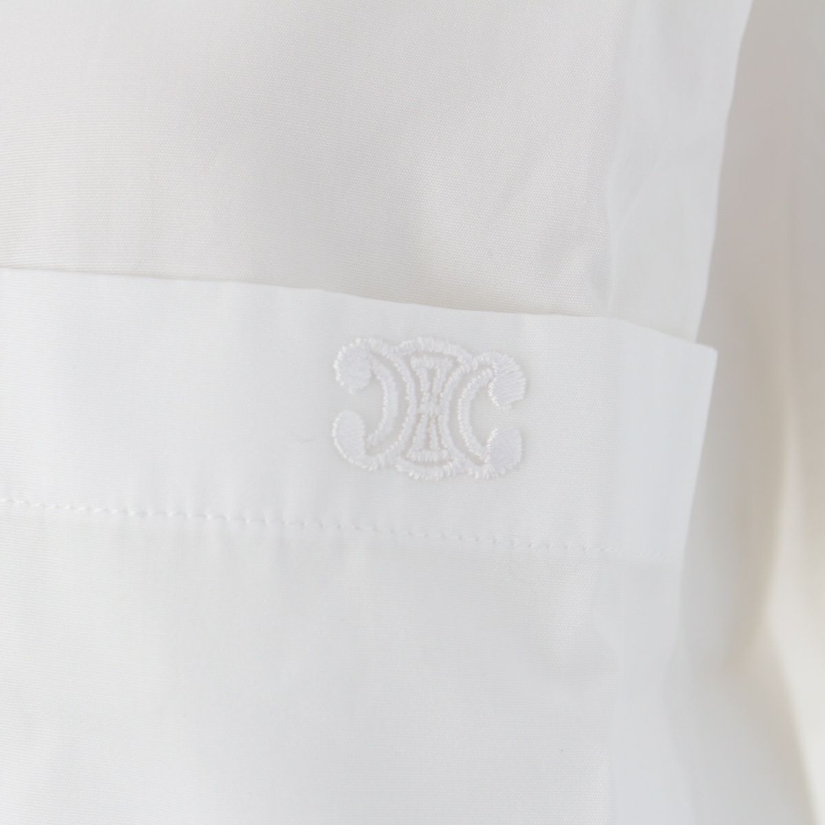 セリーヌ 23SS コットンポプリン トリオンフ刺 ルーズ ドレス 長袖シャツ トップス 2C943091F ホワイト 36
