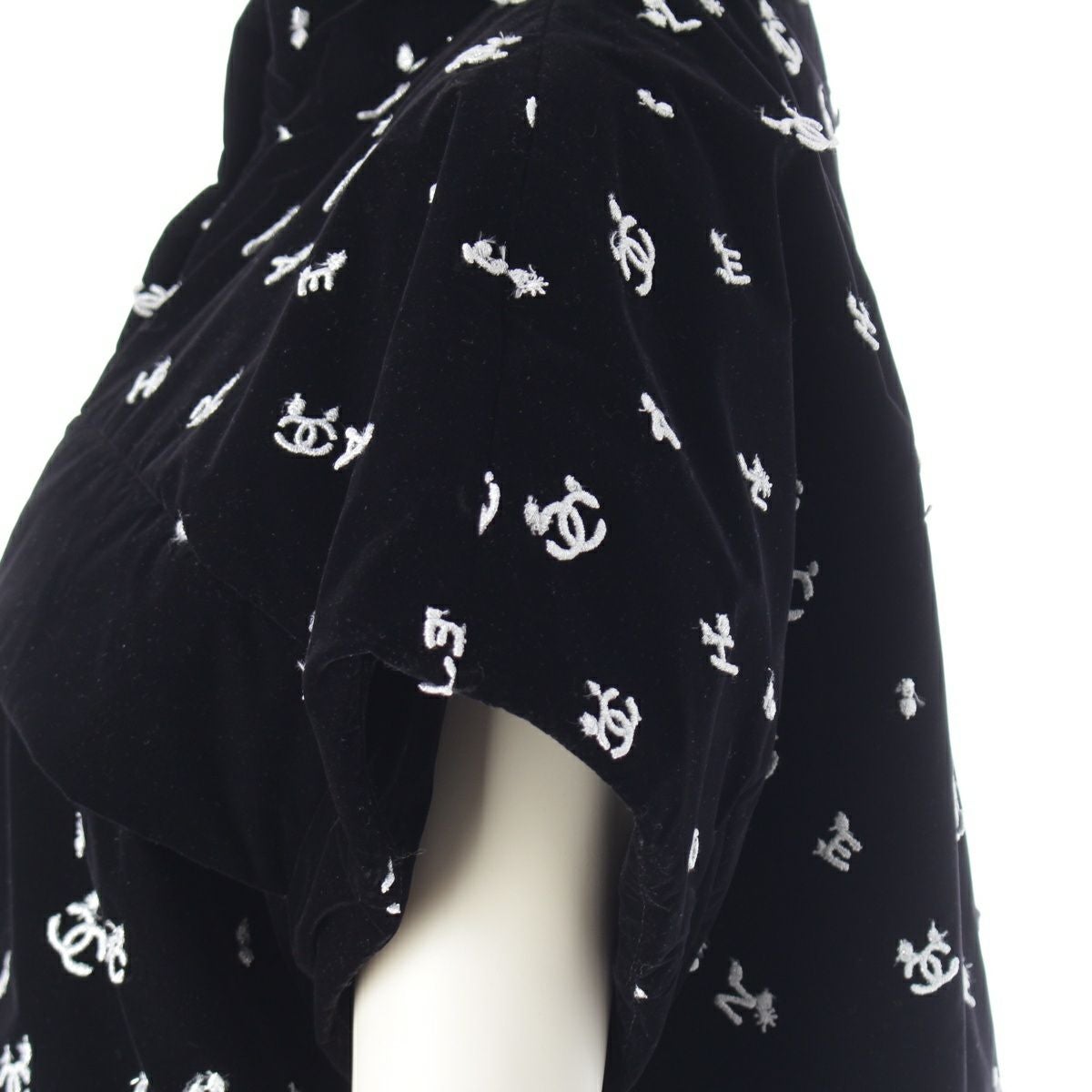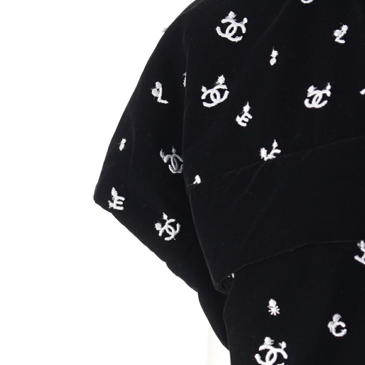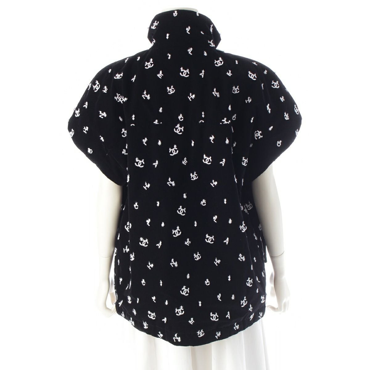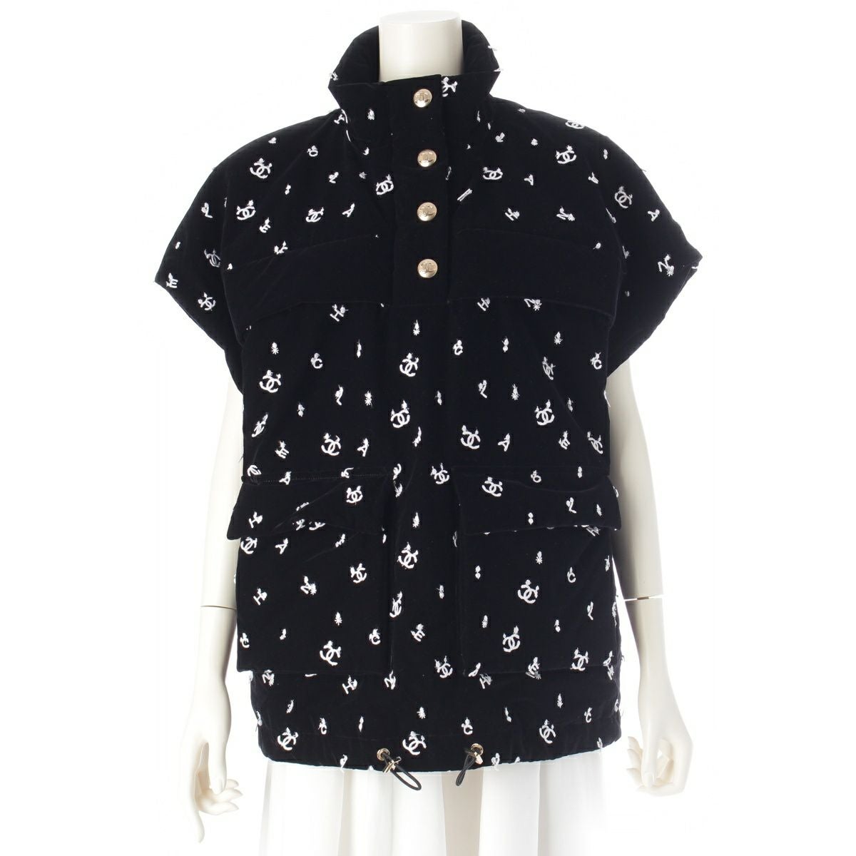シャネル 22AW ベロア調 ココマーク ボタン ロゴ刺繍 ベスト ジャケット アウター P73242 ブラック 38