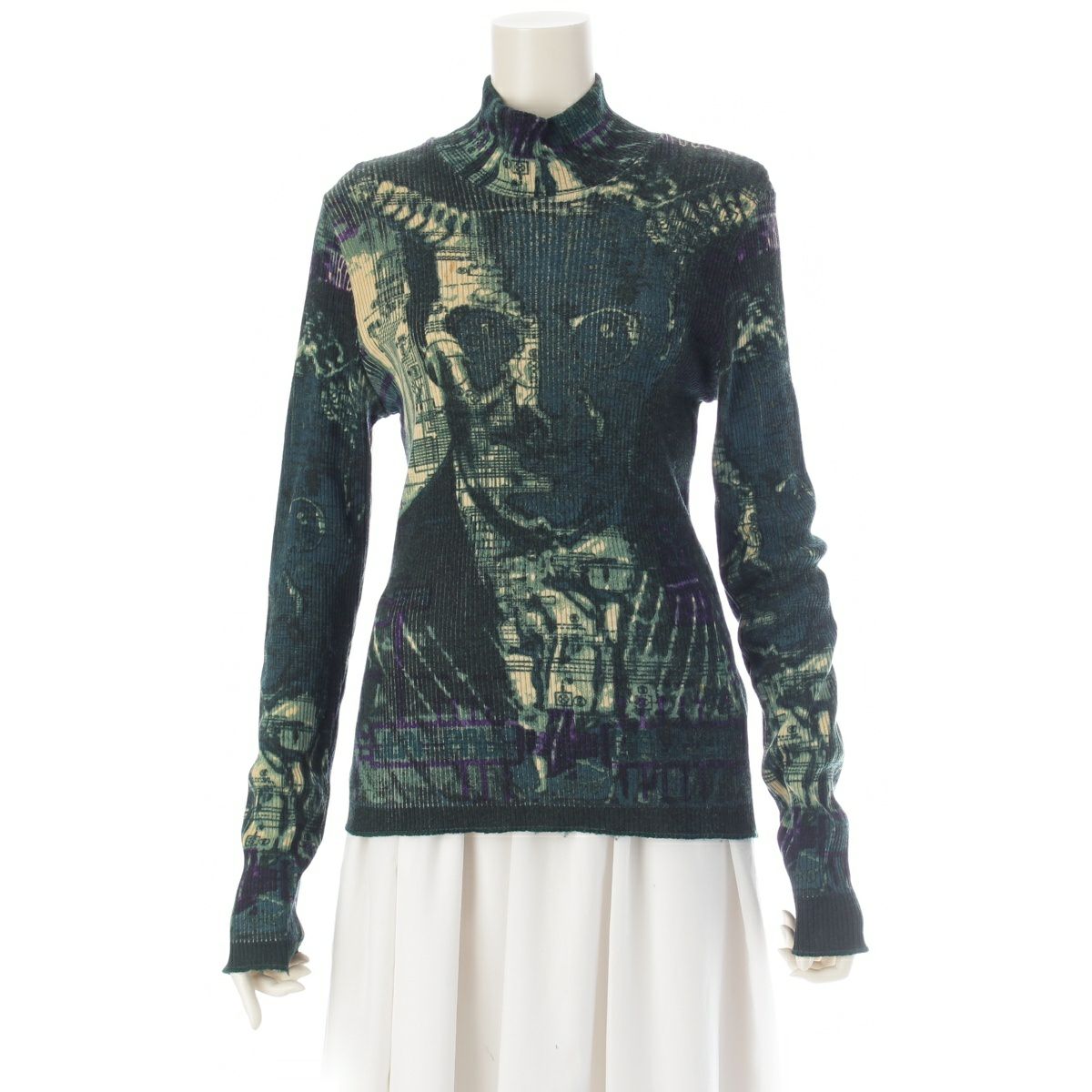 ジャンポールゴルチエ 1995 95AW ジャンポールゴルチエ マイユ ウール 仮想現実 VIRTUAL REALITY CYBER モックネック ニット トップス セーター マルチカラー 48
