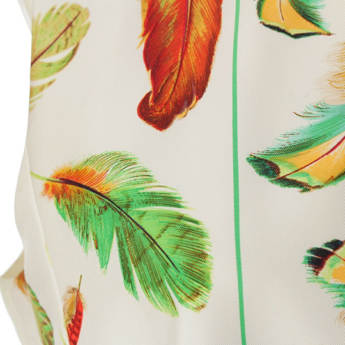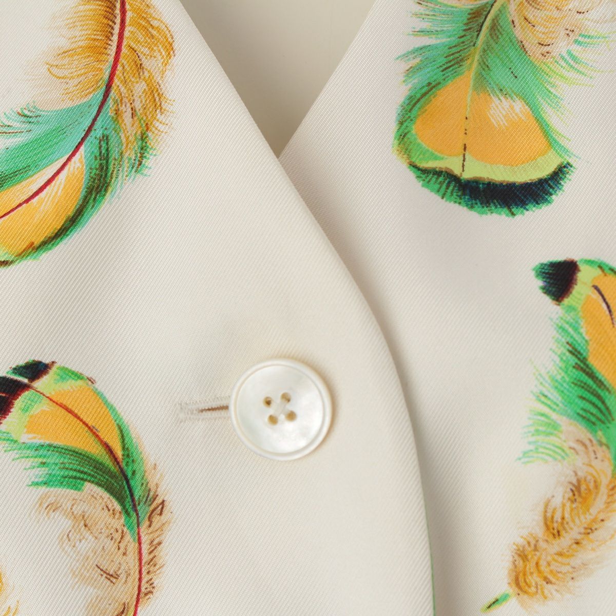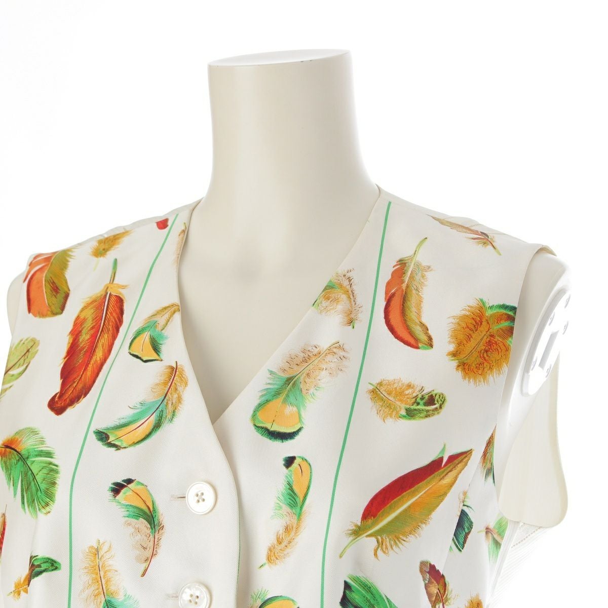 エルメス シルク ヴィンテージ 羽柄 フェザー柄 ベスト トップス アイボリー マルチカラー 38