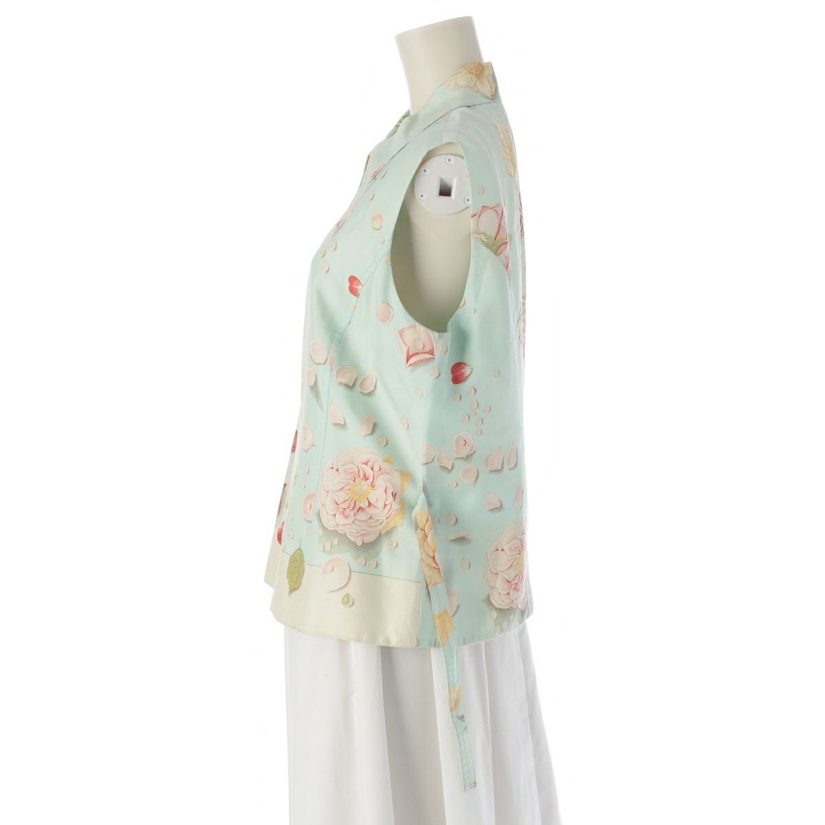エルメス LA ROSEE 薔薇の雫 シルク ジップアップ ジレ ベスト トップス ライトブルー 44
