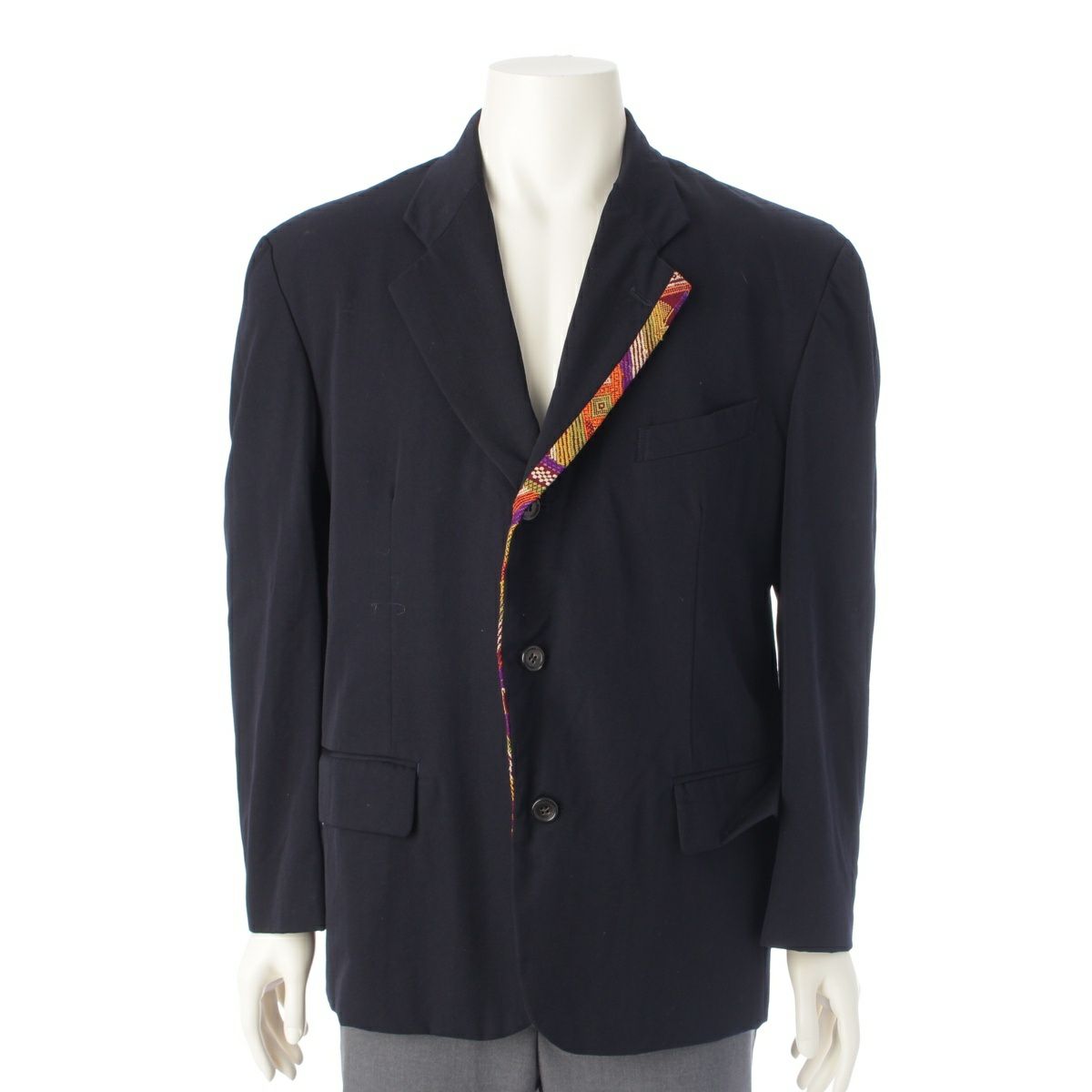 コムデギャルソンオムプリュス AD1991 92SS ウール エスニック期 ラペル切替 3B テーラードジャケット ネイビー S