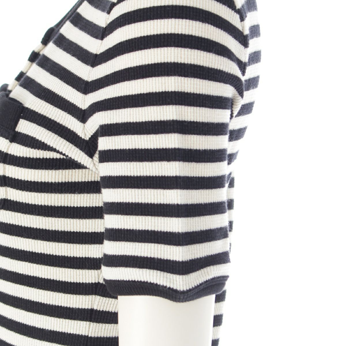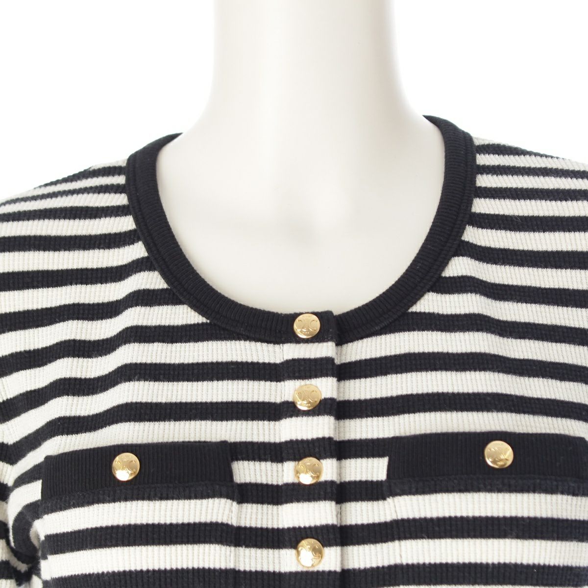 セリーヌ エディ期 2023 コットン トリオンフボタン ボーダー 半袖 ニット トップス 2X46H136K ブラック ホワイト S