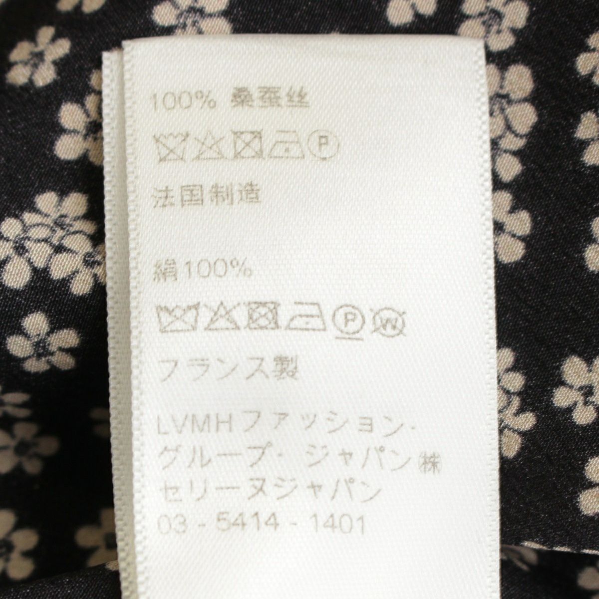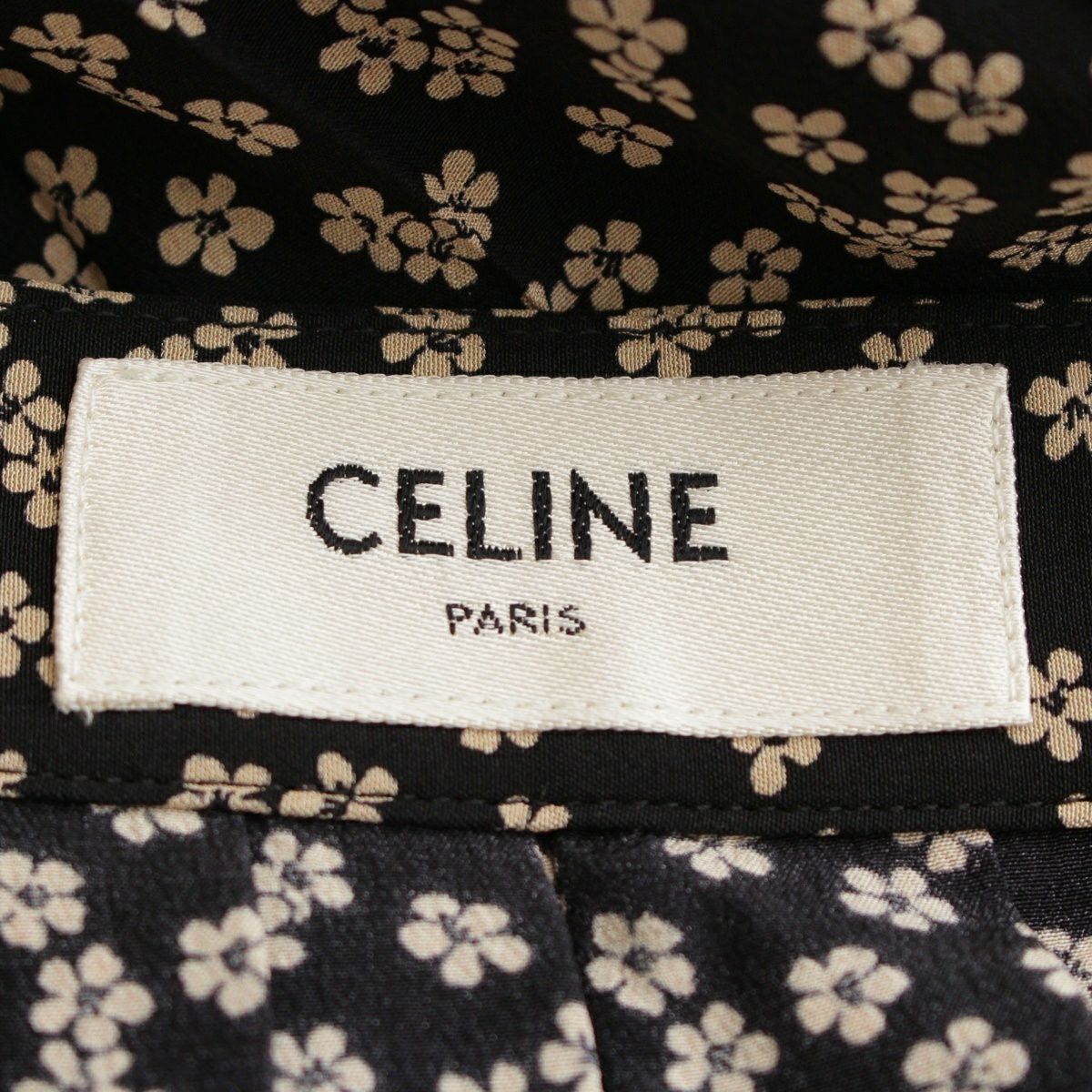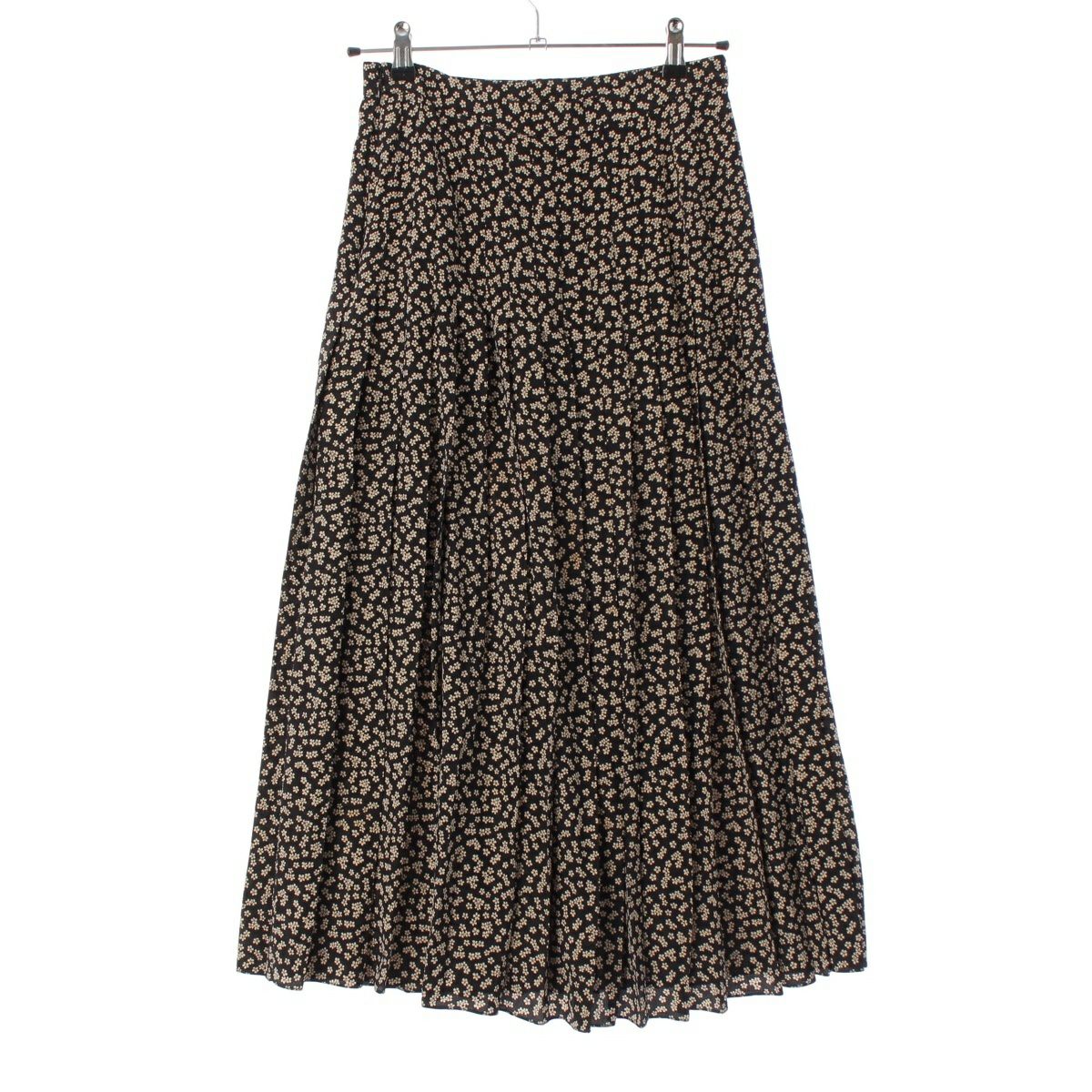 セリーヌ シルク エディ期 フラワー 花柄 ミディ プリーツ スカート 2J026479K ブラック 38