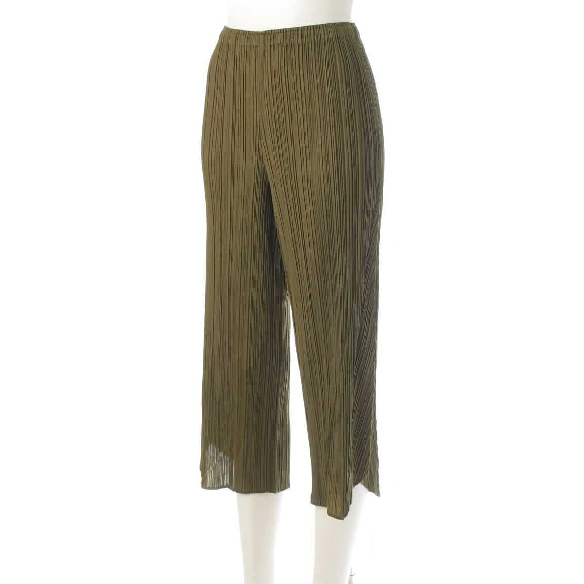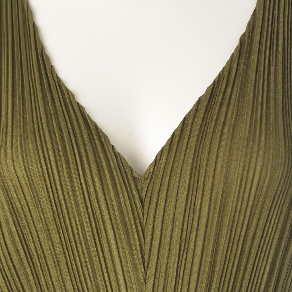 プリーツプリーズ イッセイミヤケ ポリエステル ノースリーブ Aライン 斜めプリーツ クロップドパンツ パンツセットアップ PP03-JT147 / PP03-JF141 グリーン 3