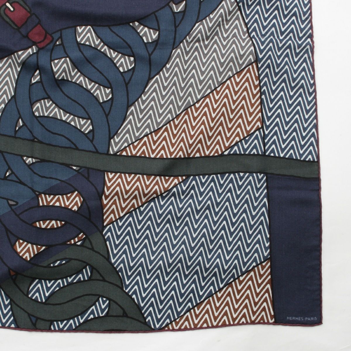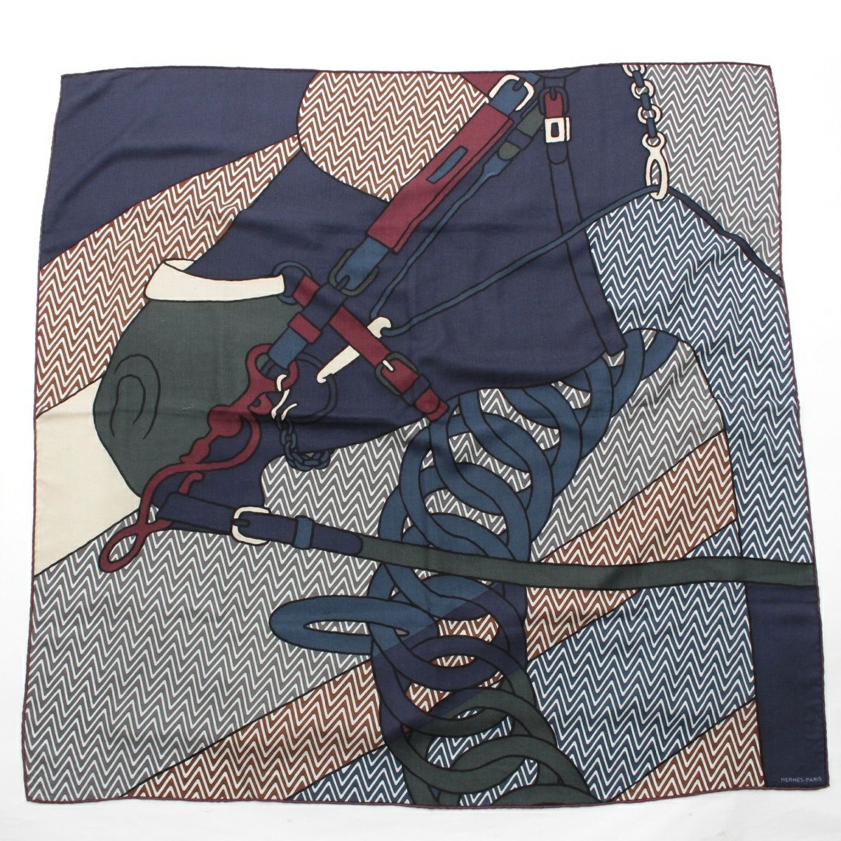 エルメス シルク×カシミヤ カレ Harnais de ca cabriolet スカーフ ネイビー系