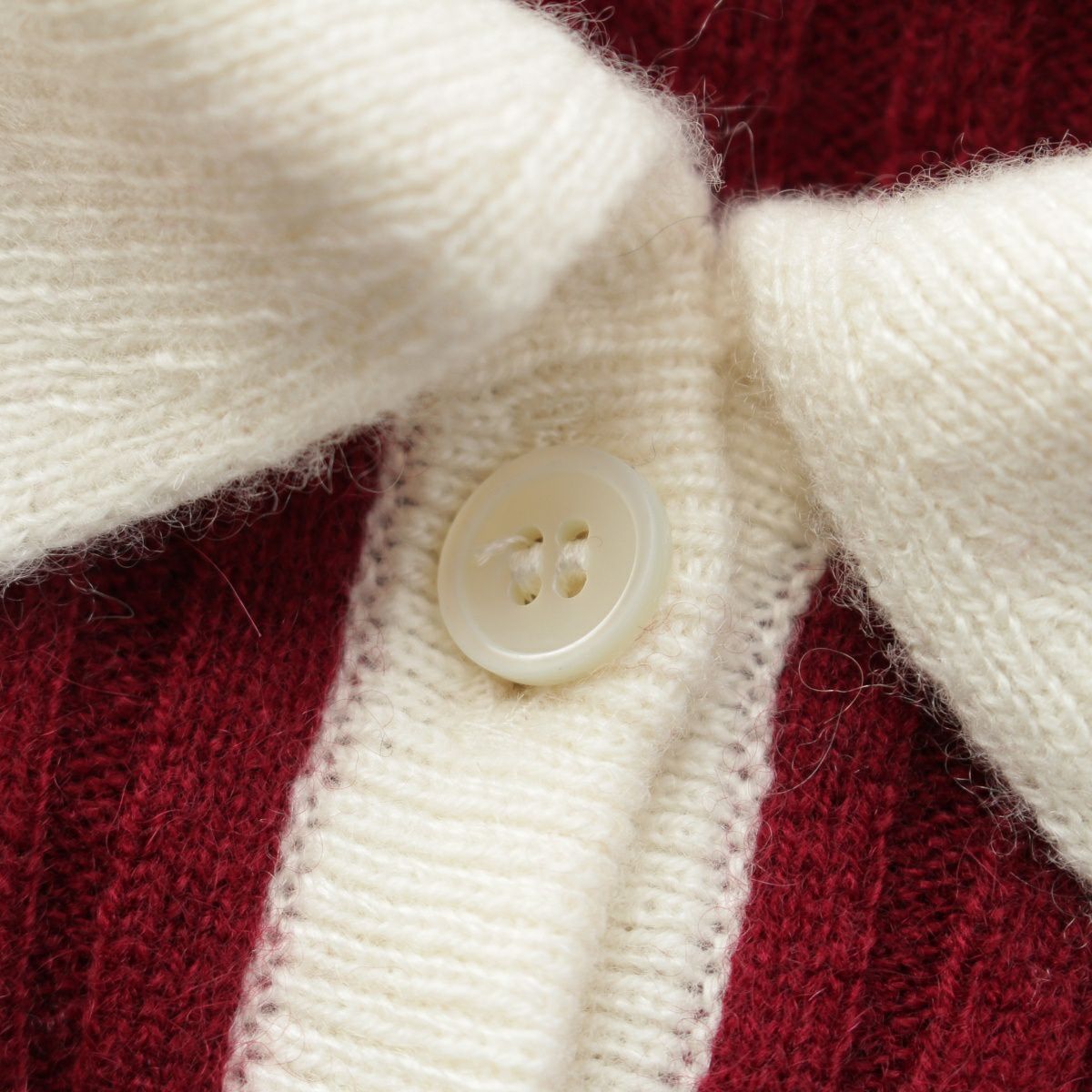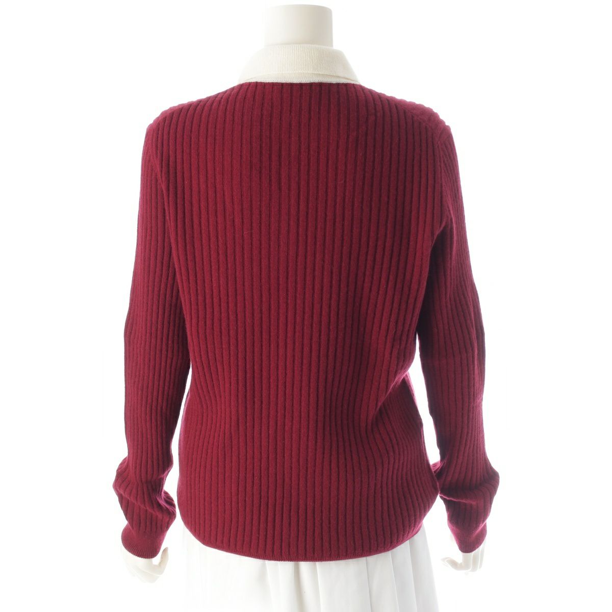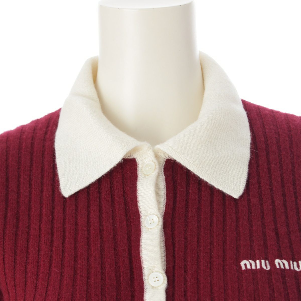 ミュウミュウ 25SS カシミヤ 刺繍ロゴ 長袖 リブニット ポロシャツ セーター トップス MMLA35 バーガンディ オフホワイト 36