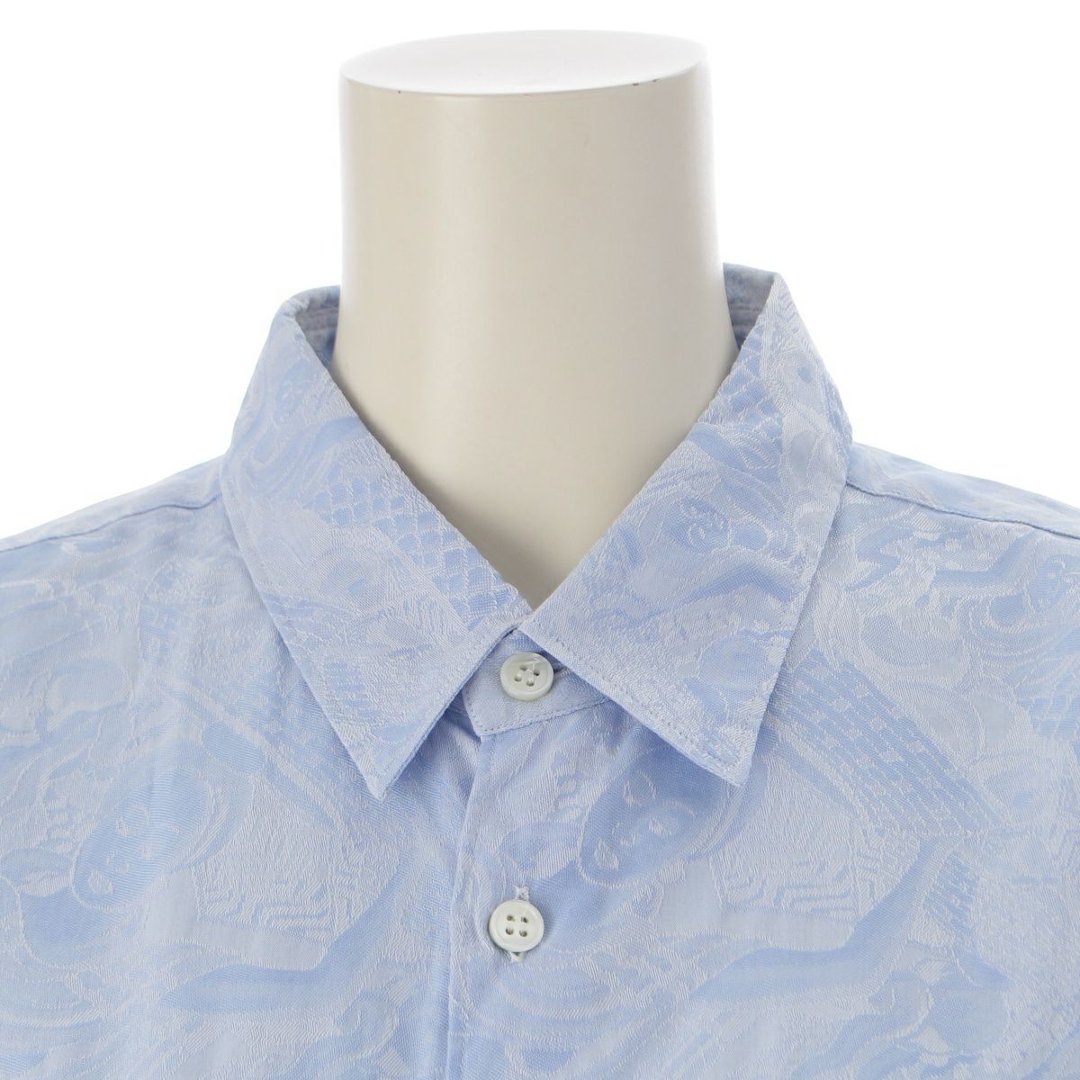 コムデギャルソン コットン 仏像 顔 フェイス 総柄 長袖シャツ ライトブルー M