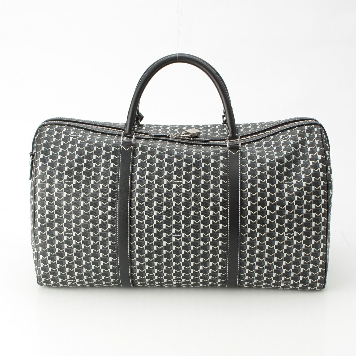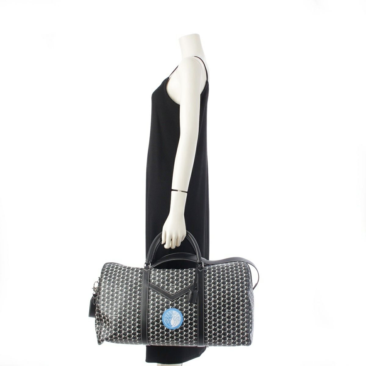 モワナ モノグラム レザー カスタムペイント ホワイトステッチ シルバー金具 ボストンバッグ モノクロ ブルー