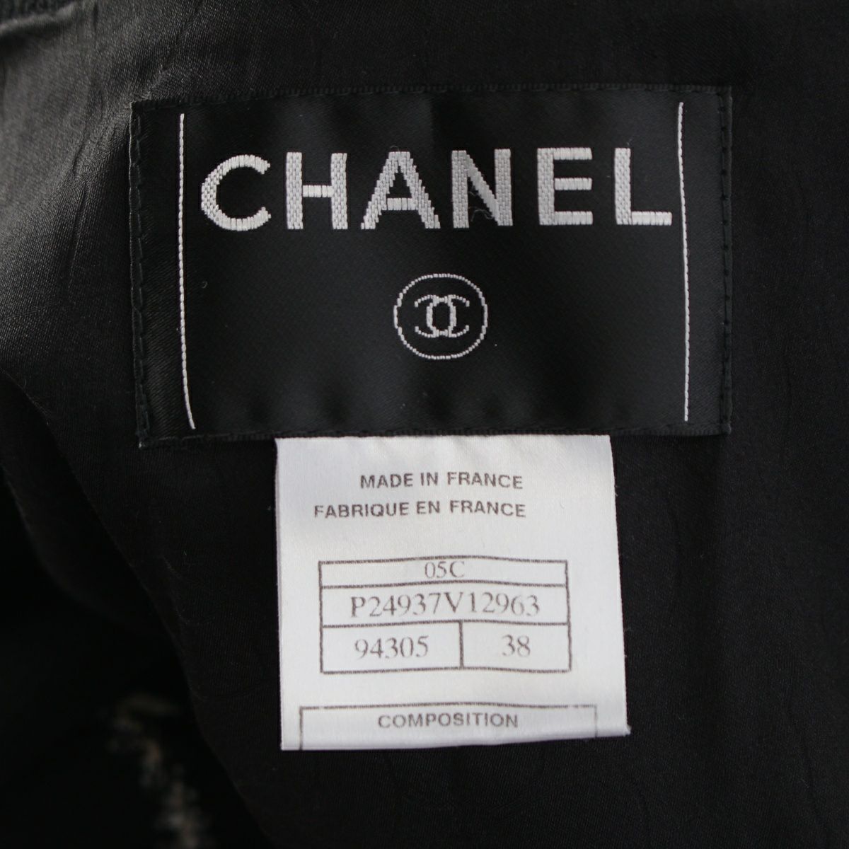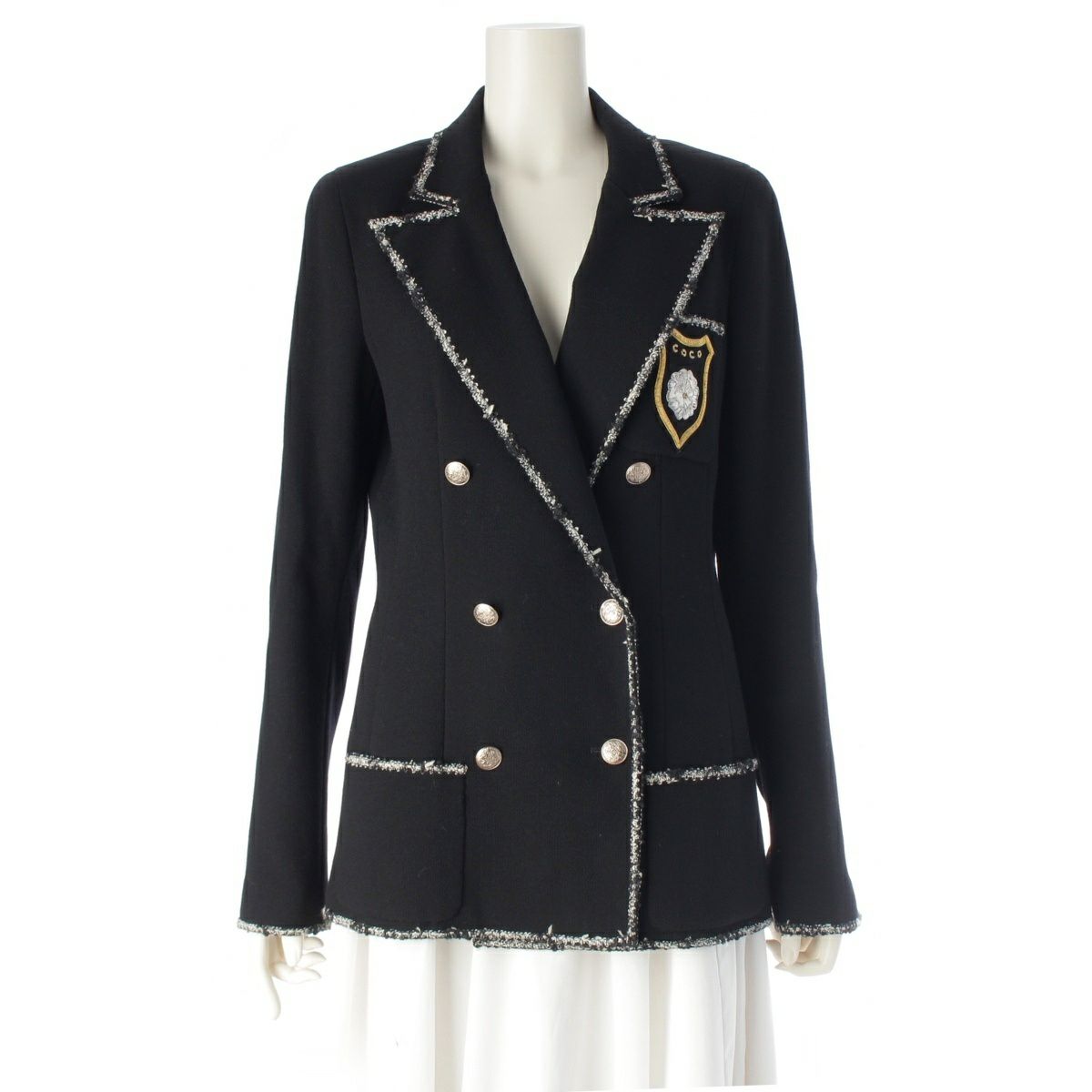 シャネル 05C エンブレム カメリア ワッペン ダブルブレスト テーラードジャケット P24937 ブラック 38