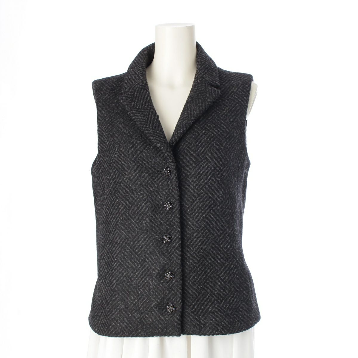 シャネル 24AW ウール LOOK49 ビジューボタン ベスト P78192 ブラック グレー 38