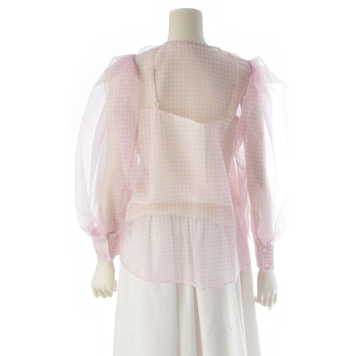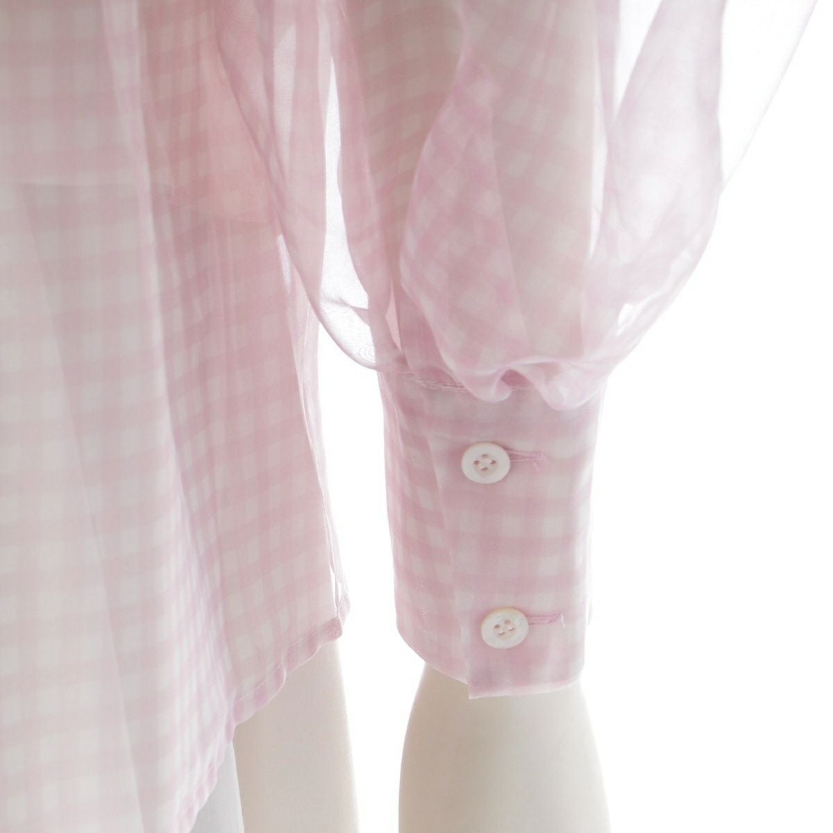 セブンテン バイ ミホカワヒト 22SS シアー スカラップ ギンガムチェック ブラウス インナー付き トップス 6S105 ピンク ホワイト M