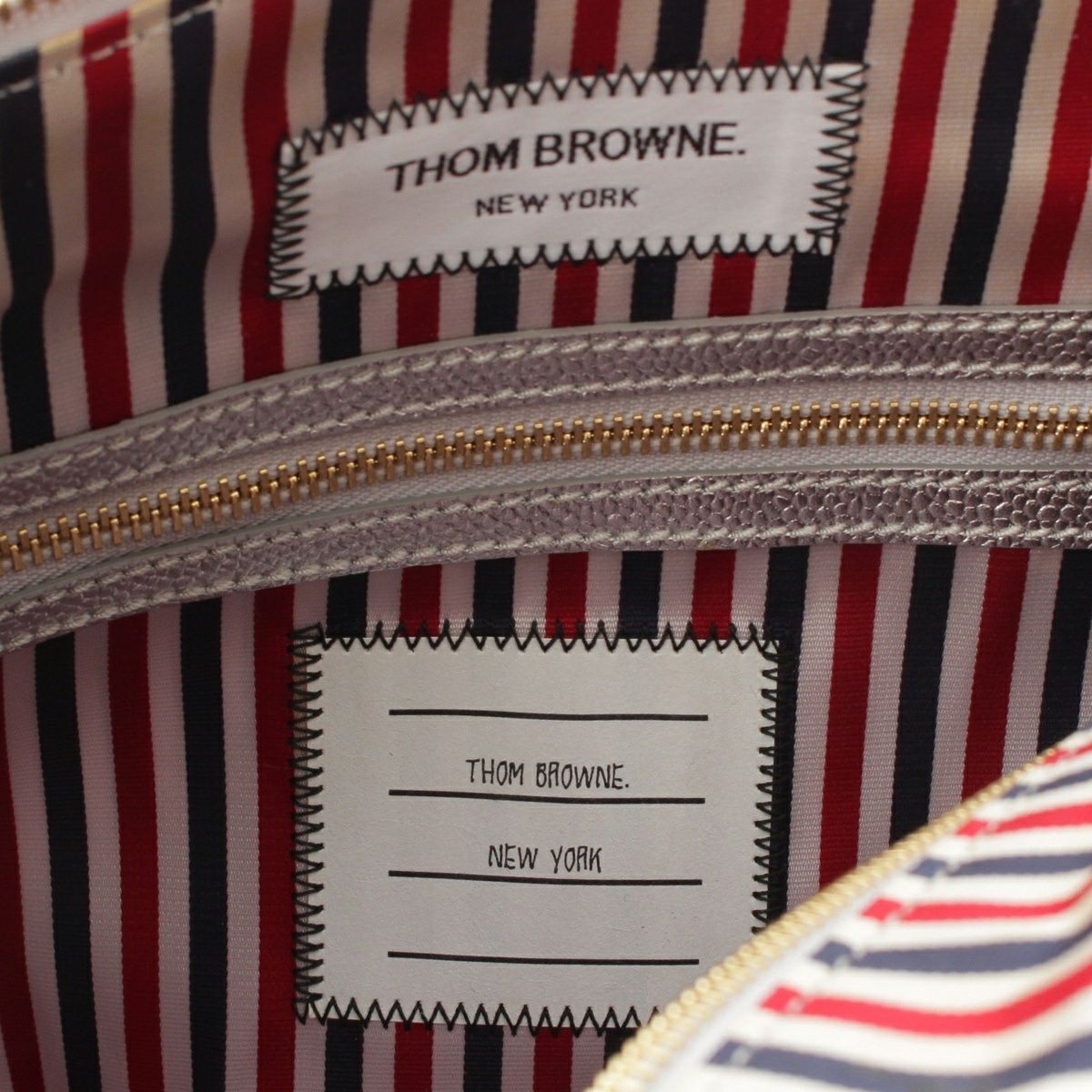 トムブラウン レザー シャーク ハンドバッグ MAG065A-00198 シルバー