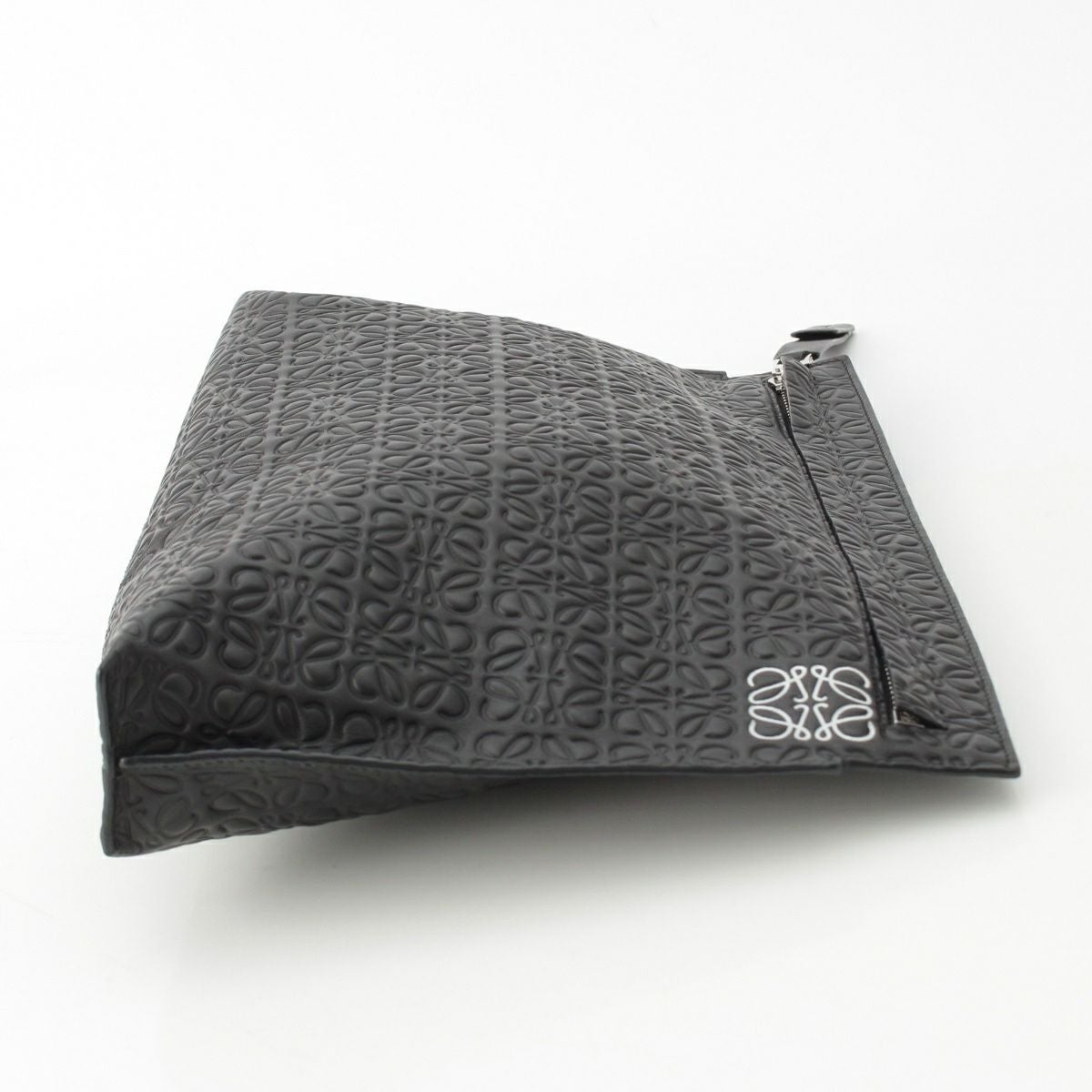 ロエベ レザー リピートアナグラム クラッチバッグ ブラック