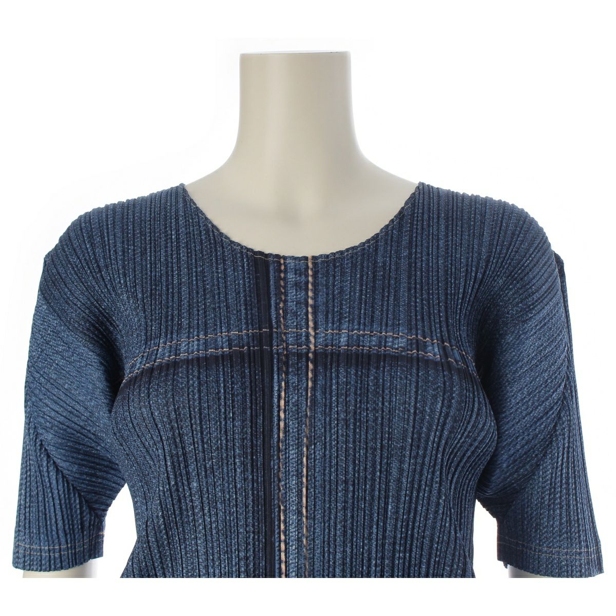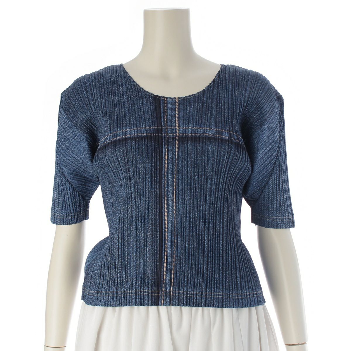 プリーツプリーズ ポリエステル デニム転写 クルーネック クロスステッチ カットソー PP12-JK254 インディゴ 3