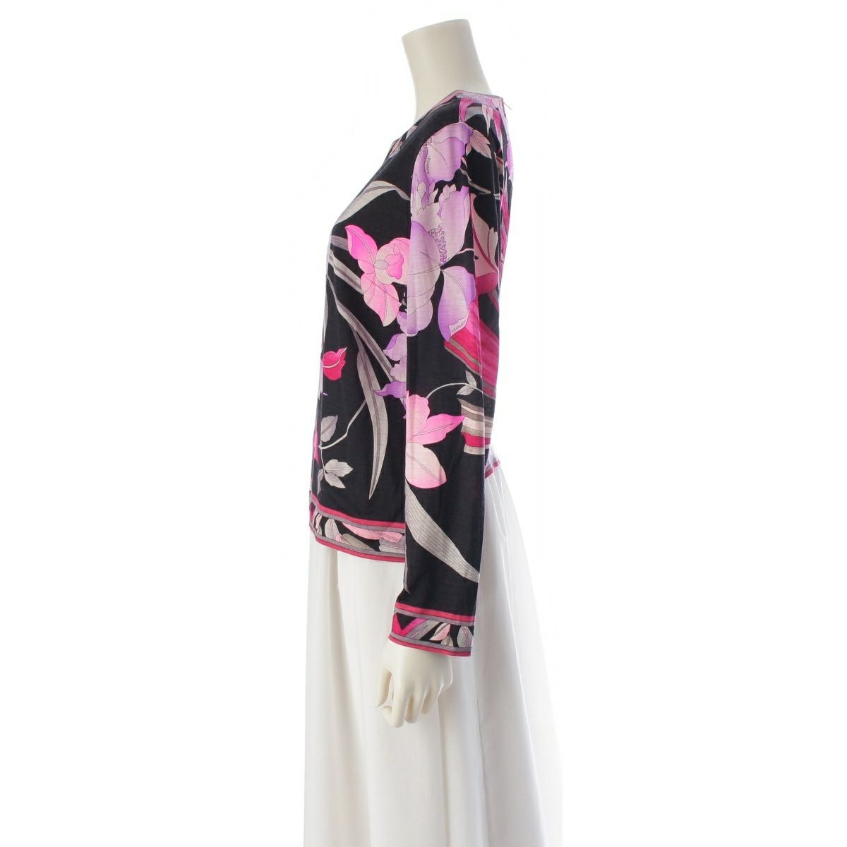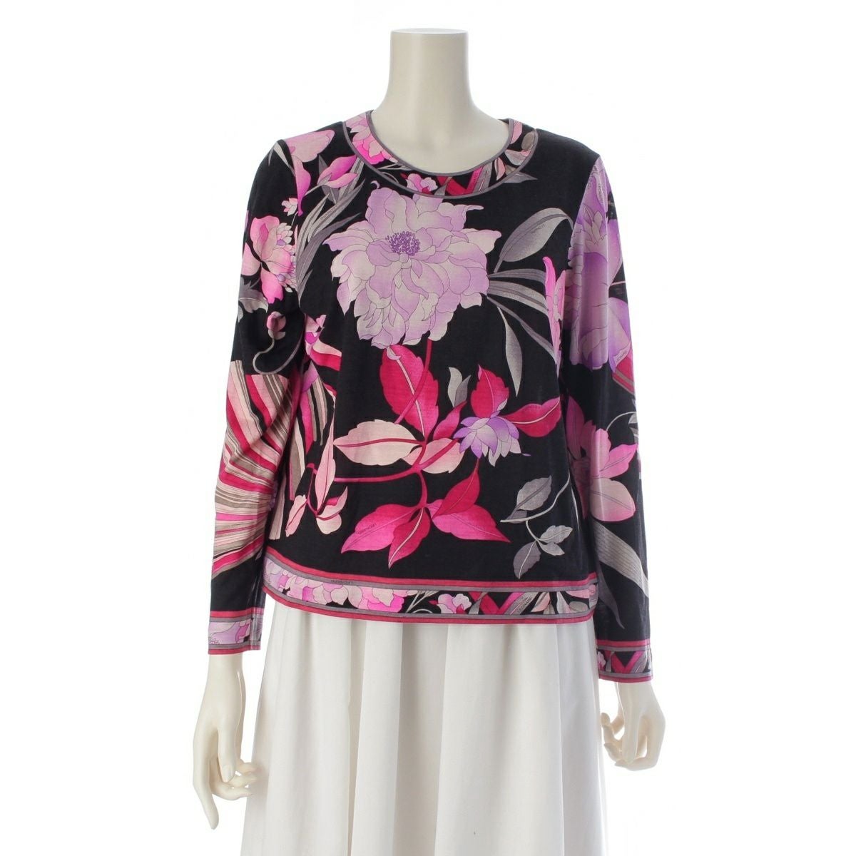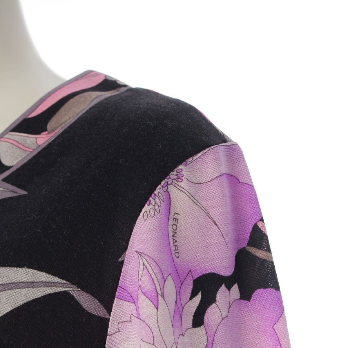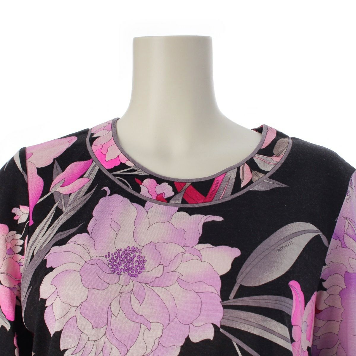 レオナール ウール シルク クルーネック 長袖 トップス 0369109 ブラック ピンク LL
