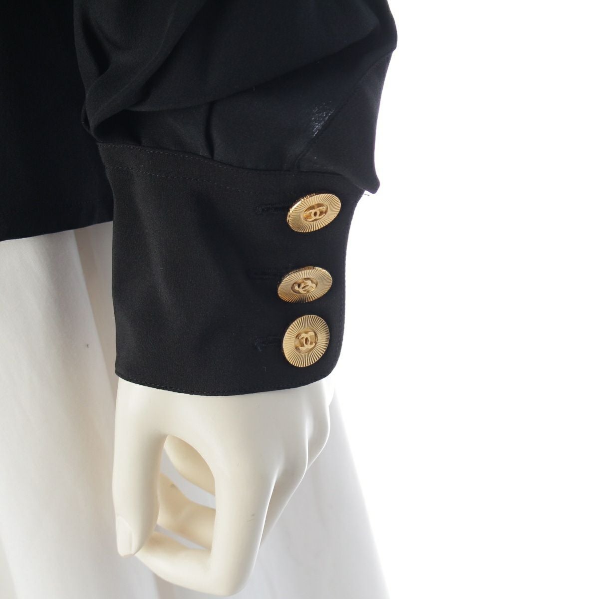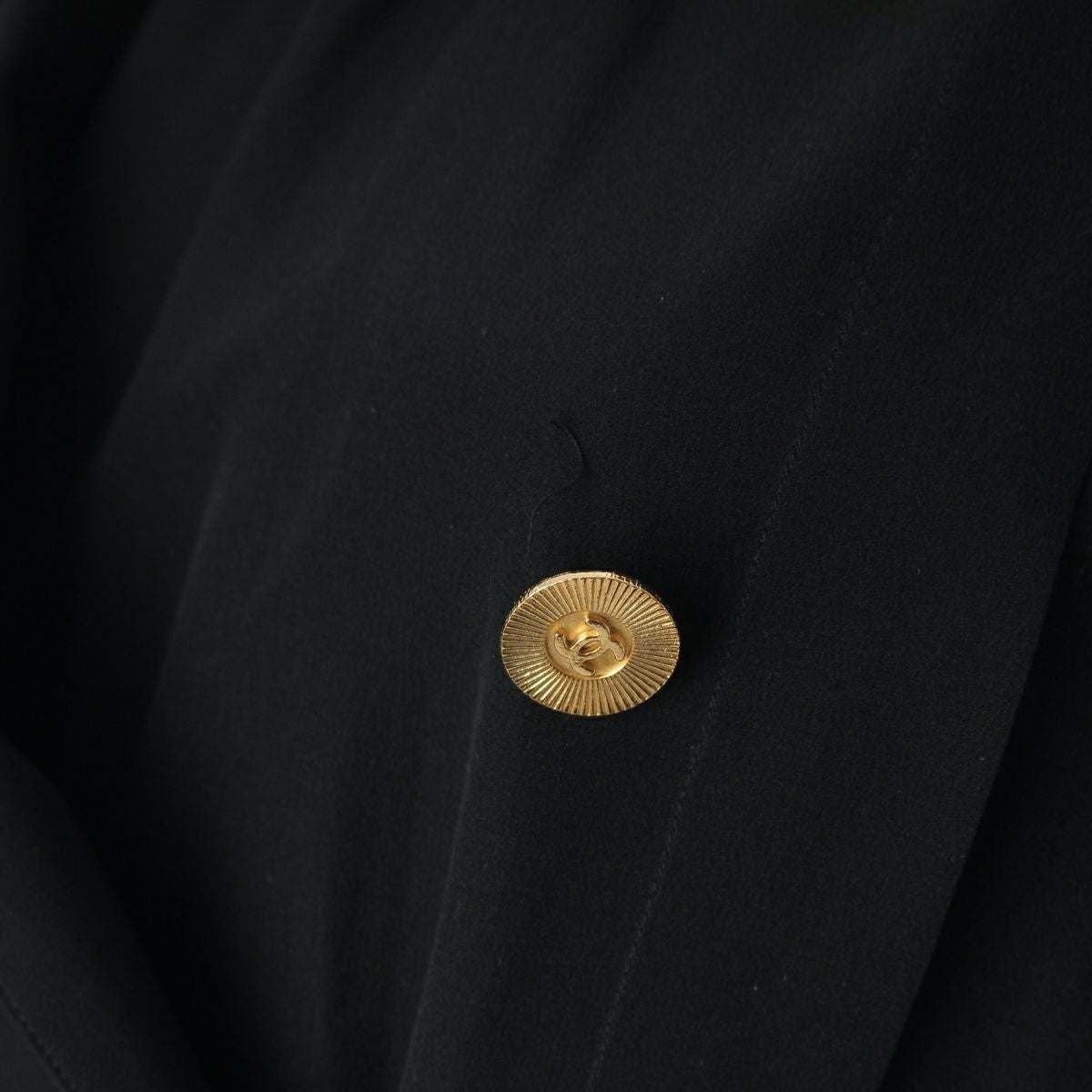 シャネル シルク 紙タグ ココボタン ヴィンテージ ブラウス ブラック 38