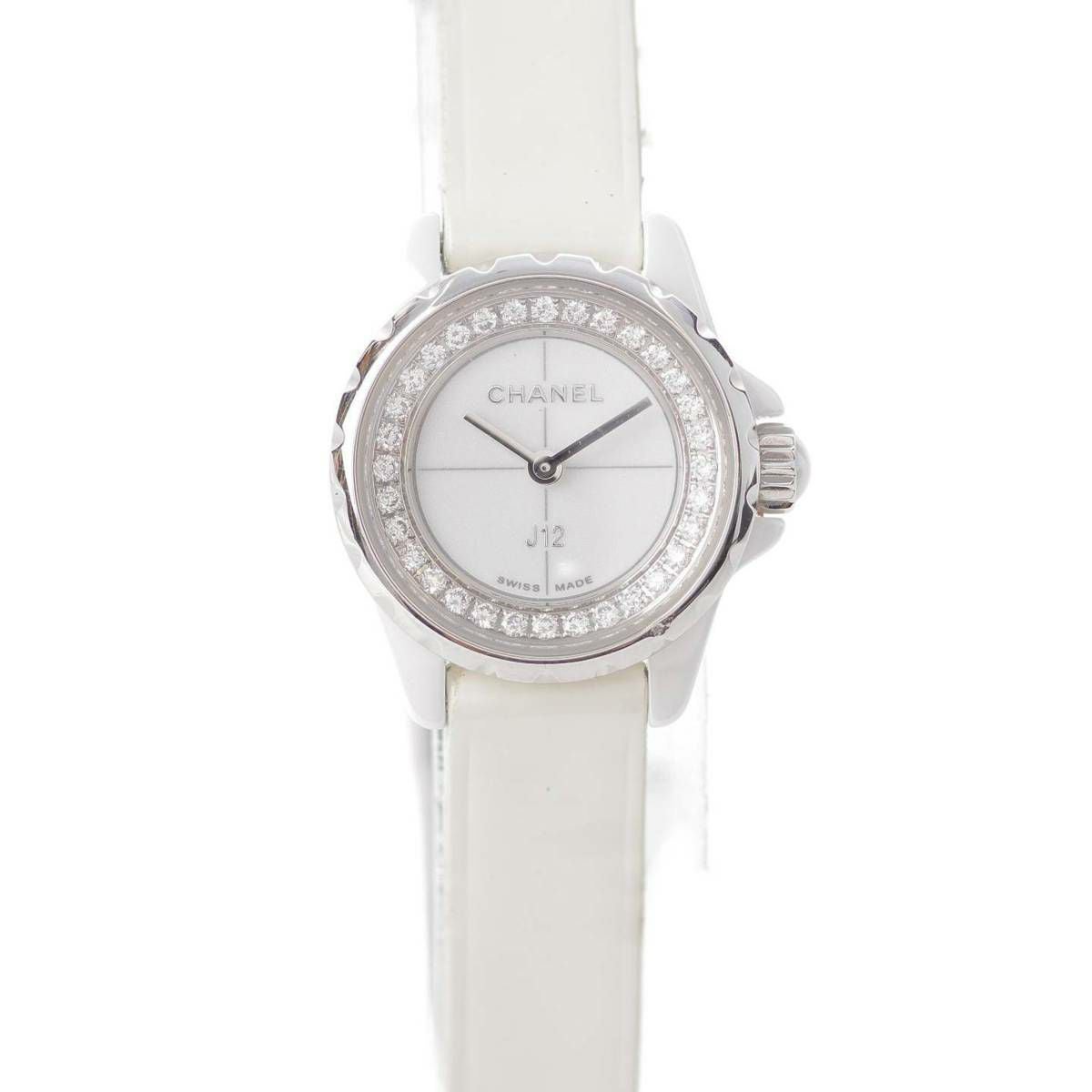 シャネル J12 XS ダイヤ カーフストラップ レディース 腕時計 クオーツ H4664 ホワイトセラミック