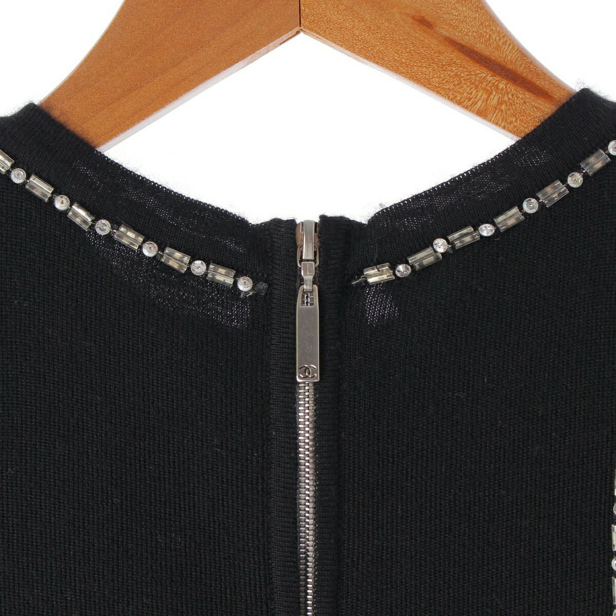 シャネル 02A バックジップ カシミヤニット スパンコール ビーズ P19931 ブラック 38