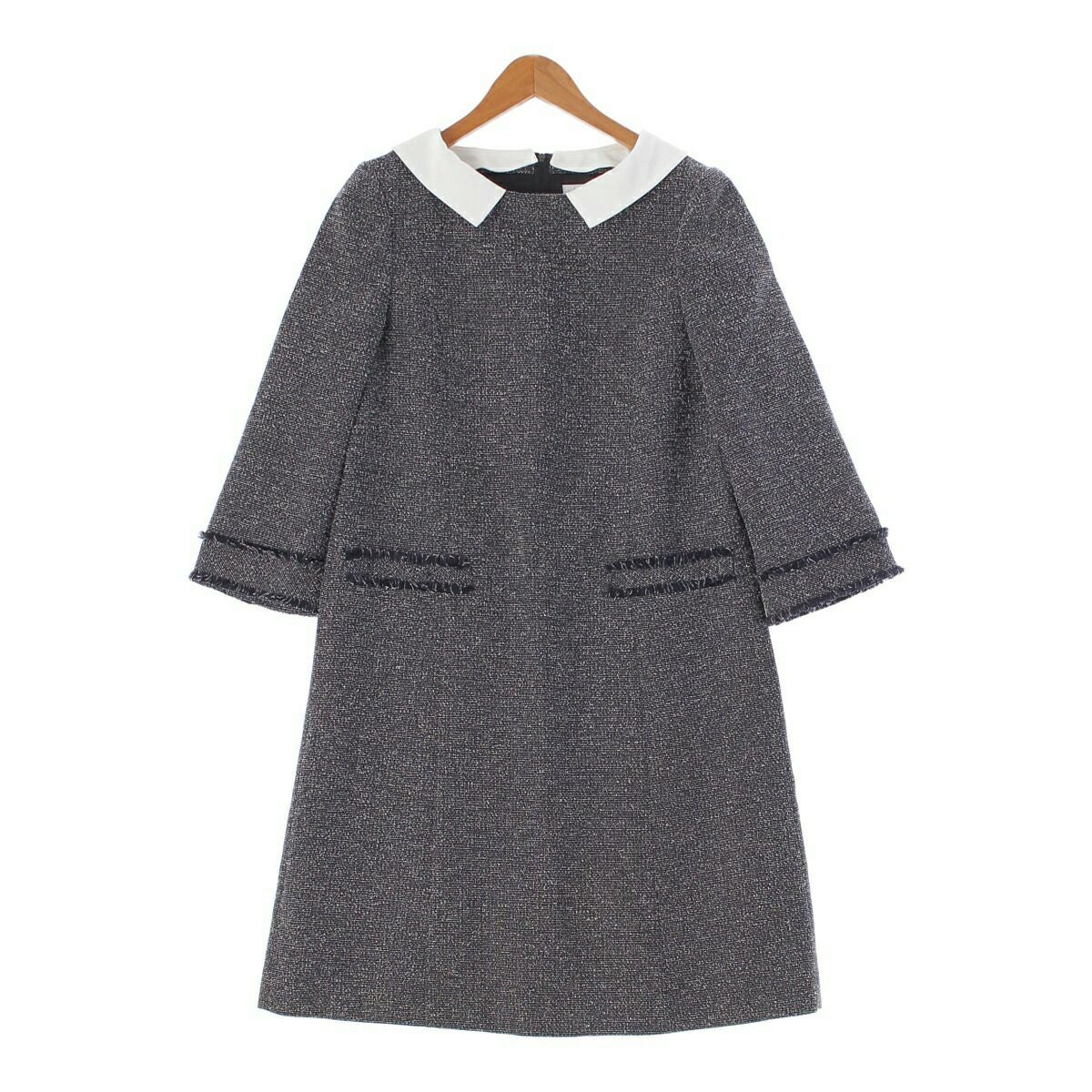 フォクシー 22年 Eclat De Nuit Dress 切り替え ツイードワンピース 42153 ブラック×ホワイト 38