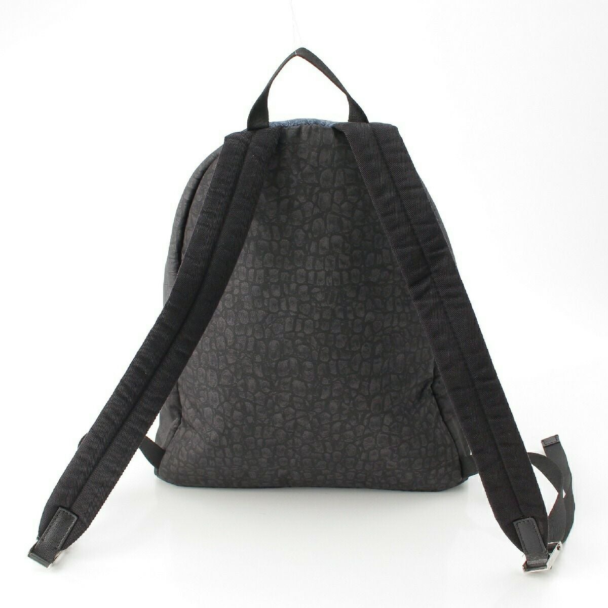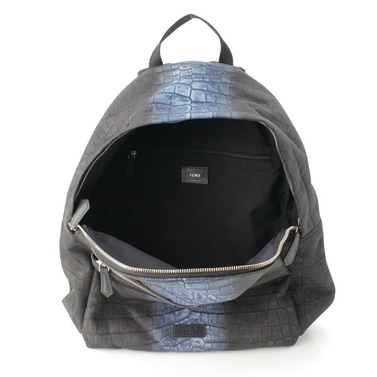 フェンディ ロゴ クロコプリント ナイロン リュック バックパック ブラック×ブルー