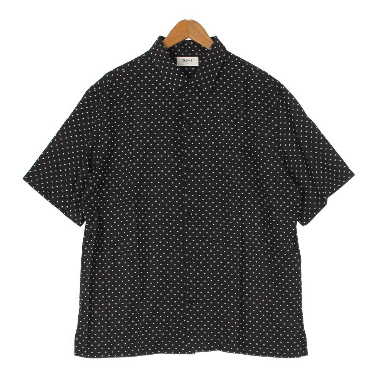 セリーヌ 24SS メンズ トリオンフプリント ハワイアンシャツ 2C946313V.38CE ブラック 40【中古】【正規品保証】