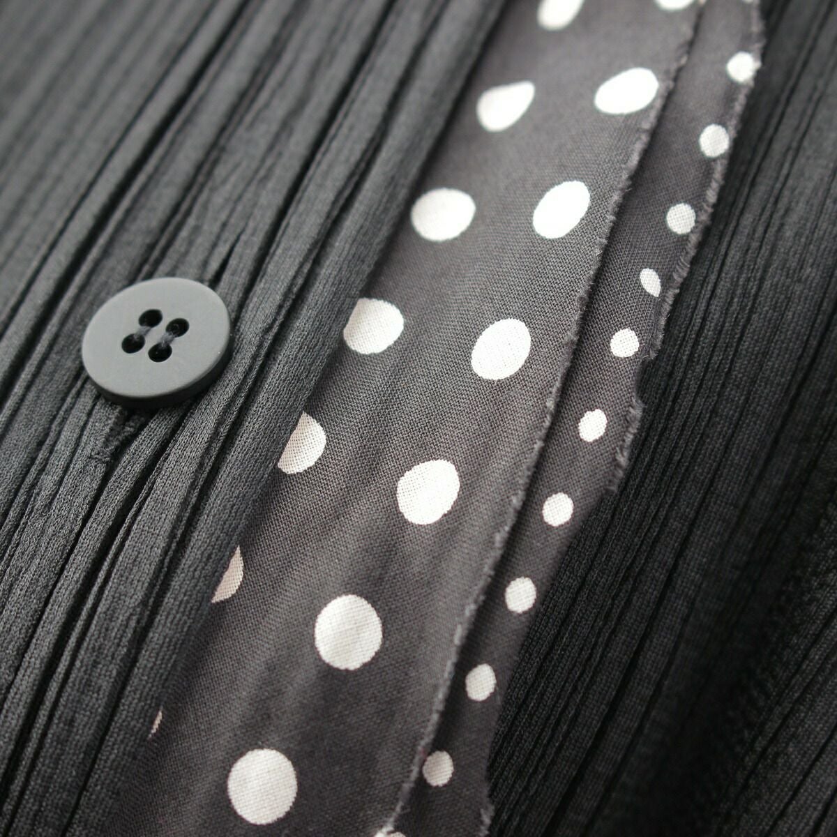 プリーツプリーズ イッセイミヤケ ドット フリル ロングスリーブ シャツ ブラウス トップス PP43-JJ672 ブラック 3【中古】【正規品保証】
