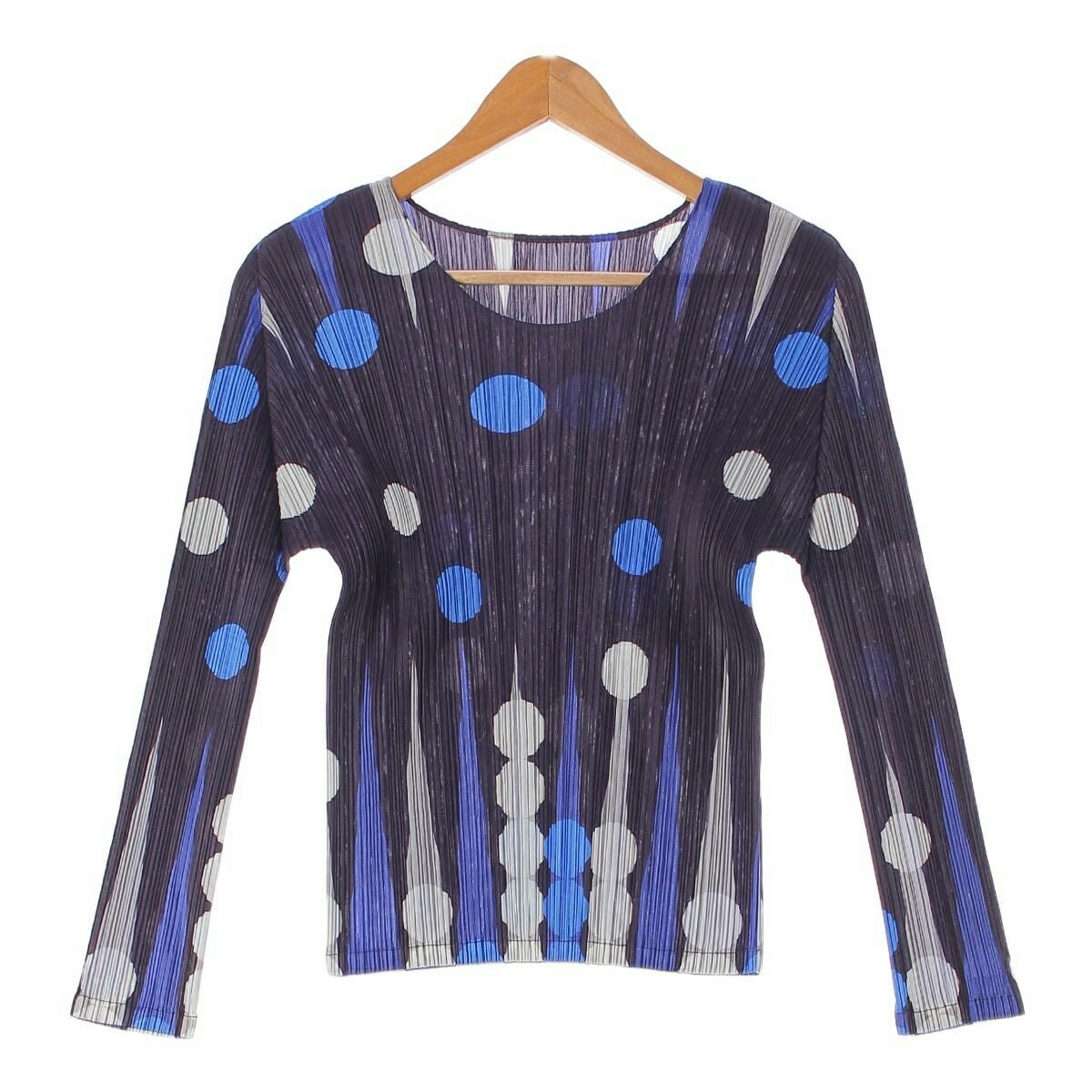 プリーツプリーズ イッセイミヤケ ドット総柄 カットソー セットアップ PP73-JK612 PP73-JG614 ネイビー【中古】【正規品保証】