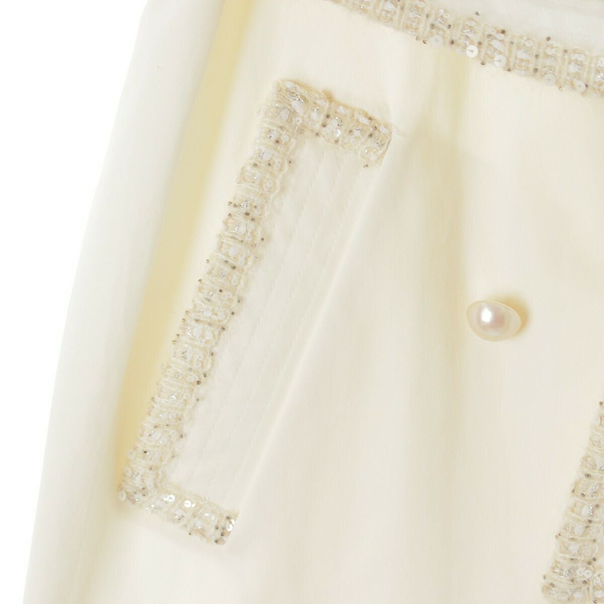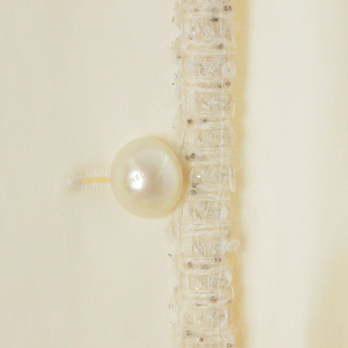 シャネル 04P パール ダブルボタン ベルト付 ツイード トレンチコート P23284 ホワイト 38【中古】【正規品保証】