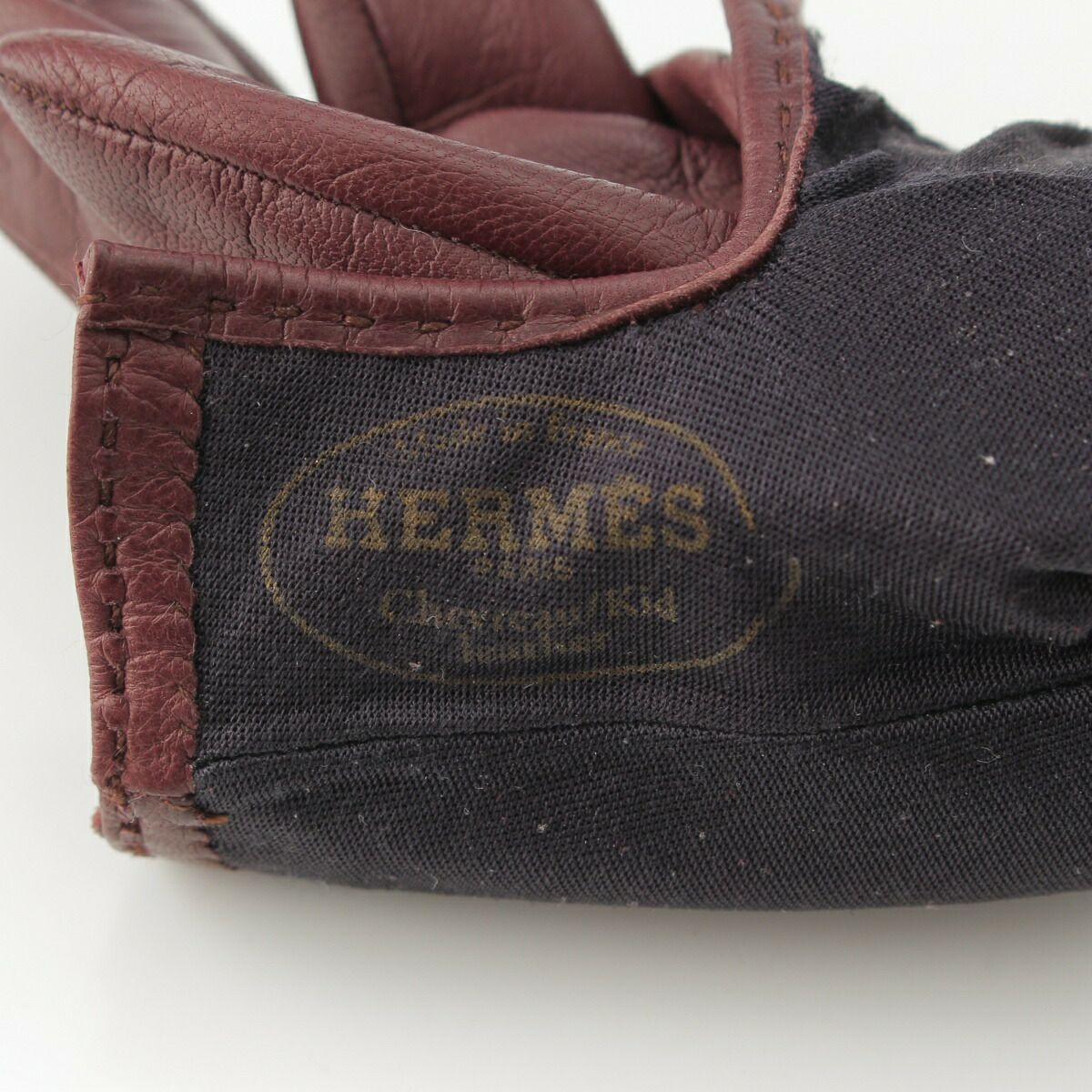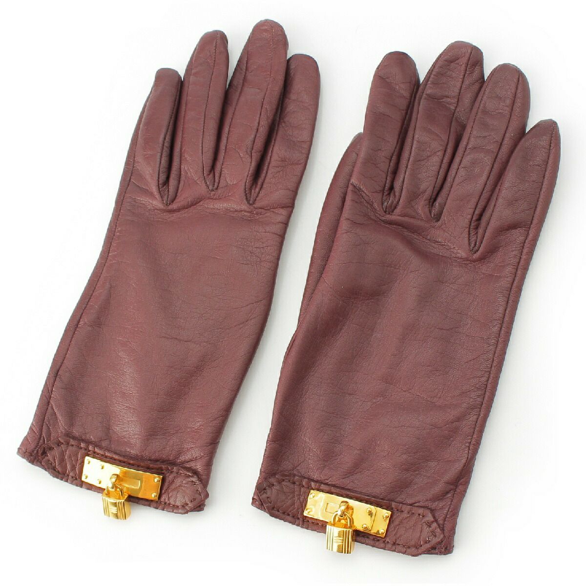 エルメス ラムスキン レザー カデナモチーフ ゴールド金具 ケリー グローブ 手袋 ブラウン【中古】【正規品保証】