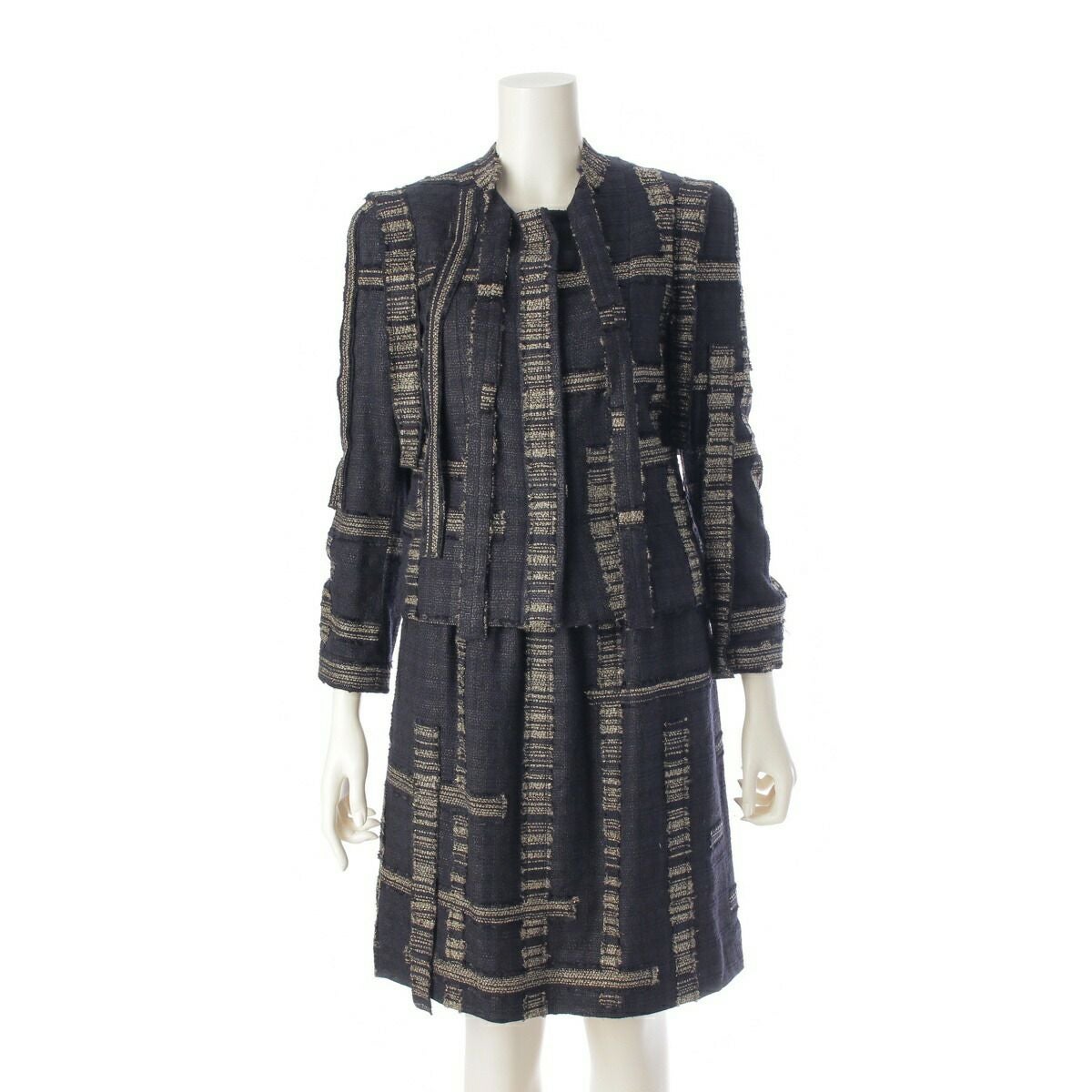 シャネル 06A ツイード ボウタイ ジャケット スカート セットアップ P29145 ブラック 34【中古】【正規品保証】