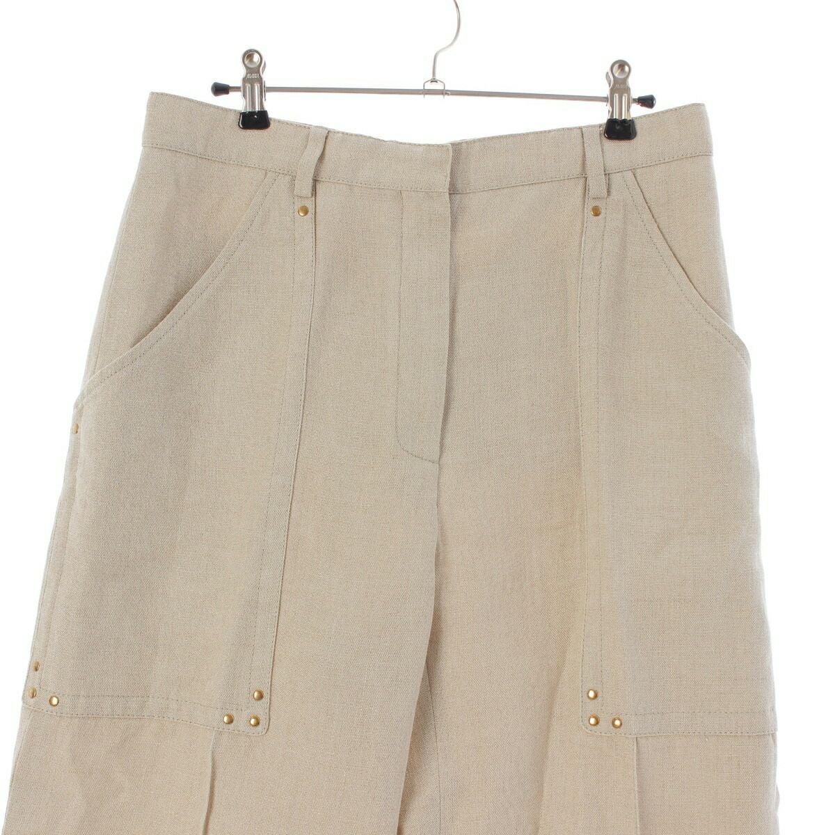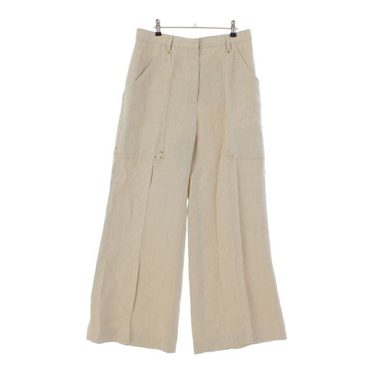セリーヌ フィービー期 リネン スタッズ フレア ワイドパンツ 21F15 3230 ベージュ 42【中古】【正規品保証】