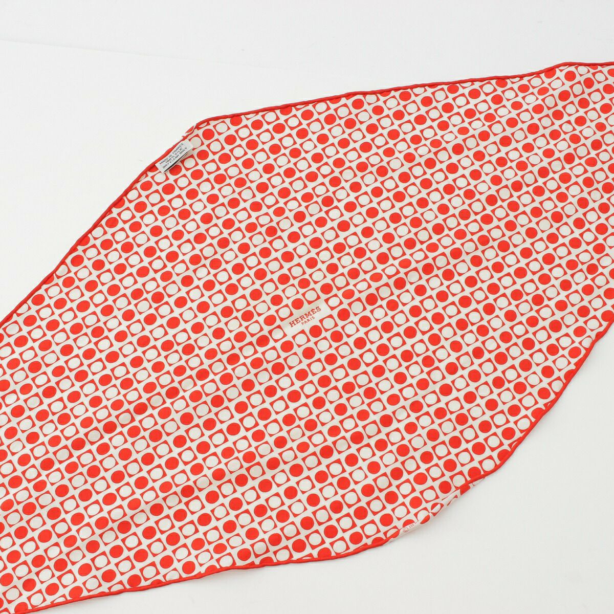 エルメス ロザンジュ シルク スカーフ ひし型 ドット 小物 レッド ホワイト マルチカラー【中古】【正規品保証】
