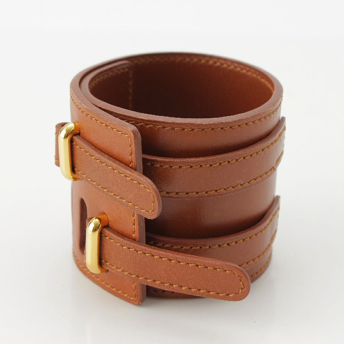 エルメス □F刻印 レザー ゴールド金具 ベルト ブレスレット バングル ブラウン