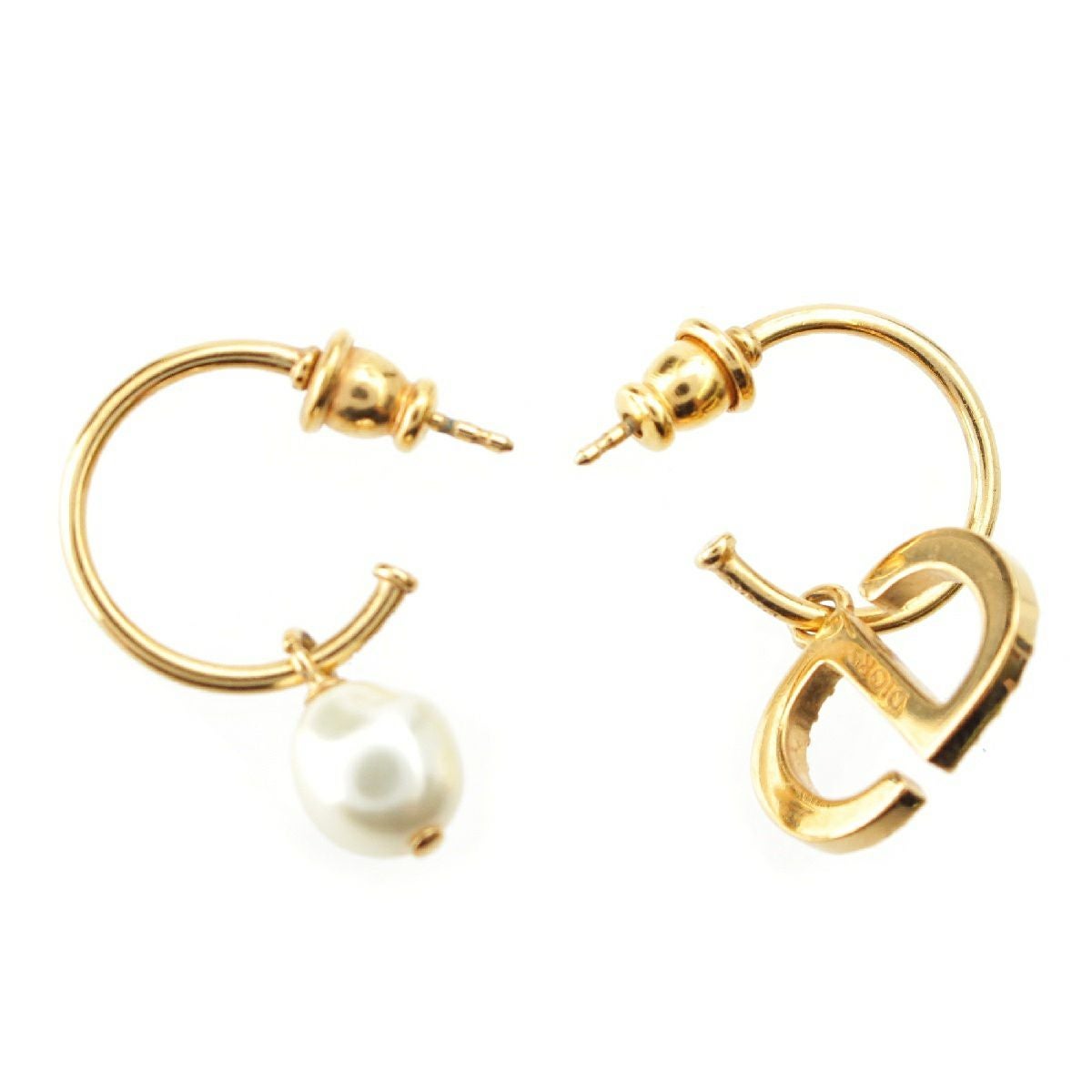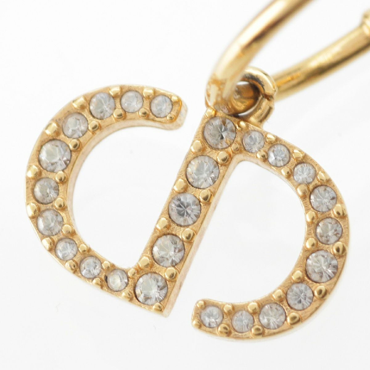 クリスチャンディオール PETIT CDロゴ ラインストーン Fパール フープ ピアス イヤリング ゴールド
