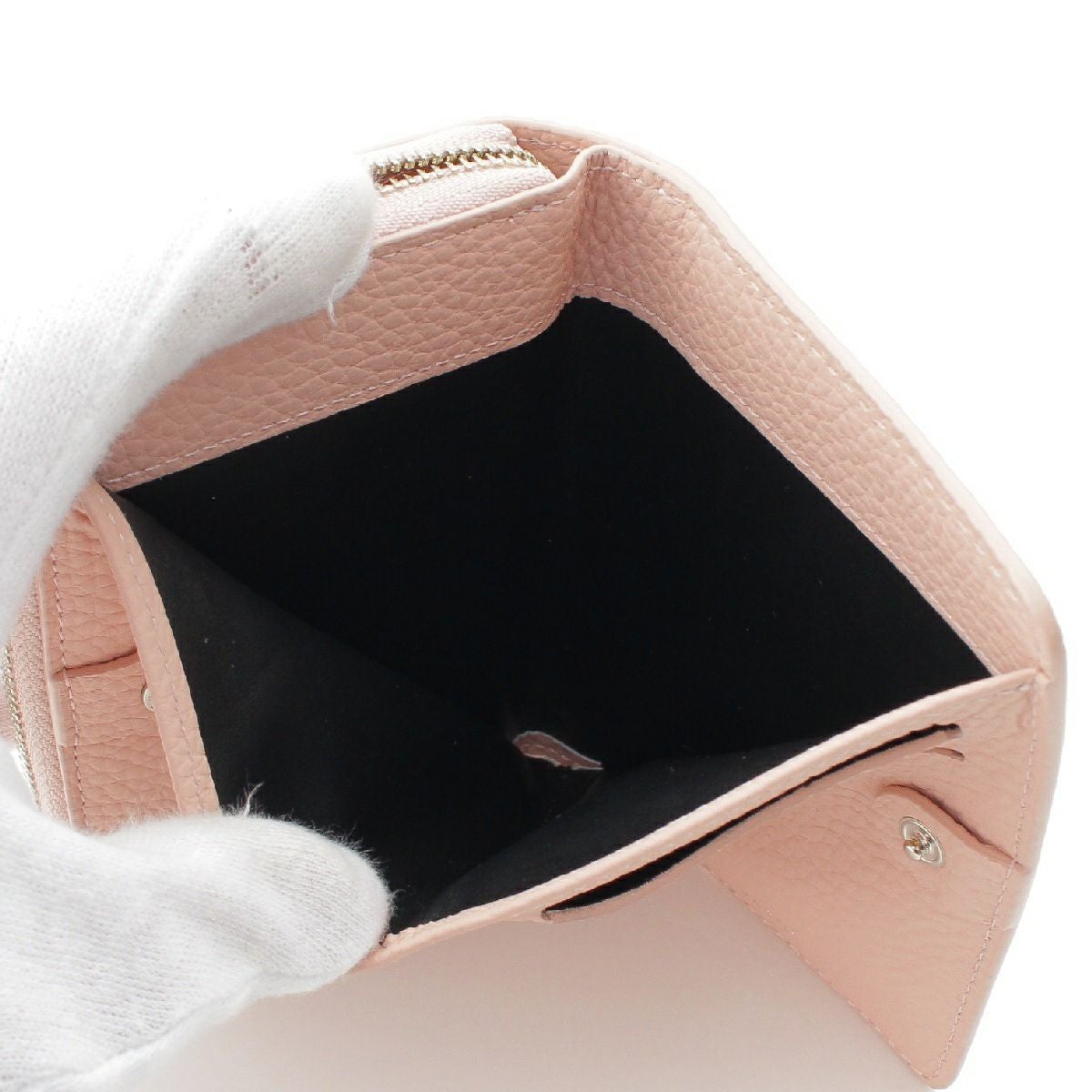 ヴァジック レザー ラウンドファスナー 二つ折り財布 コンパクトウォレット ピンク