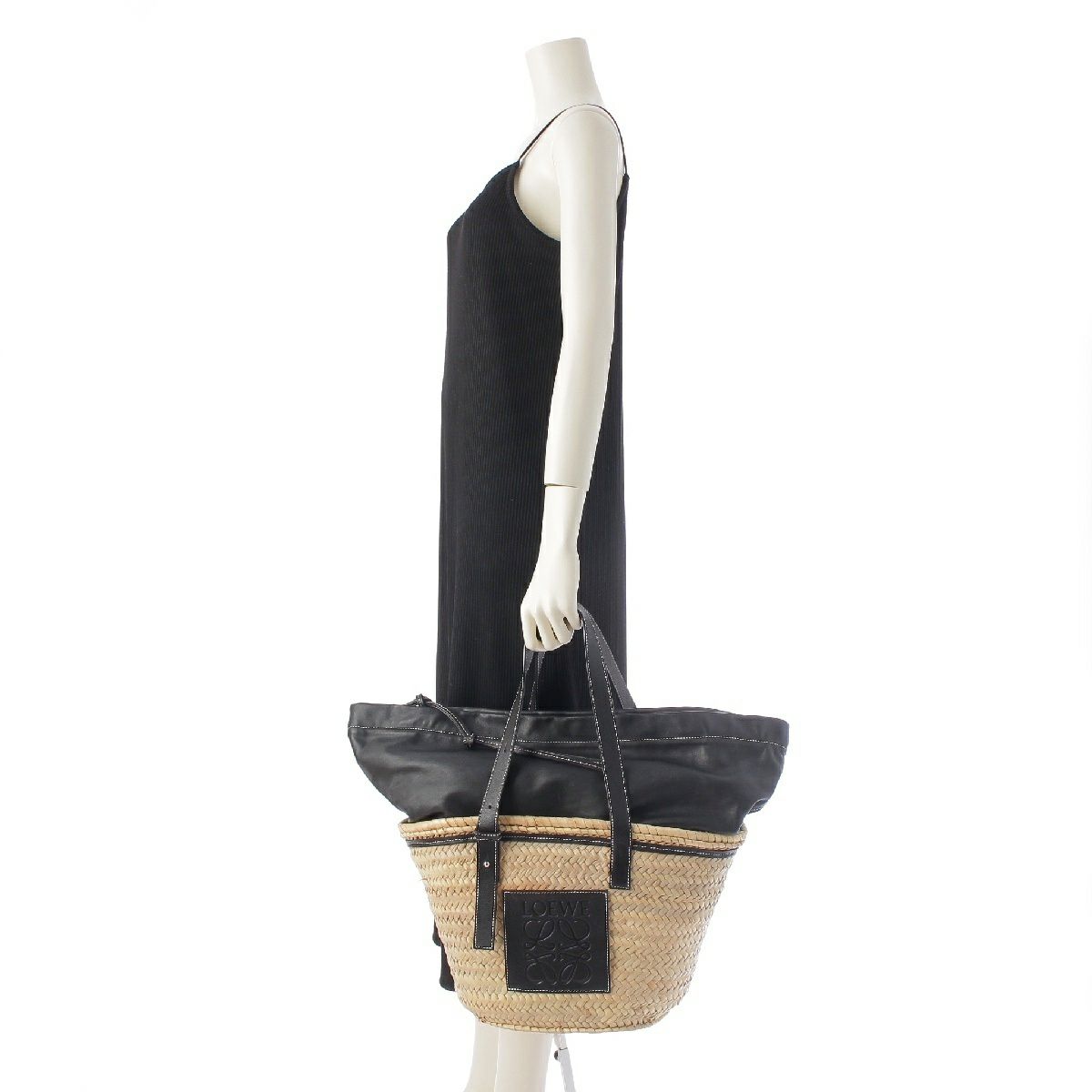 ロエベ ラフィア ストロー アナグラム バスケット トートバッグ かごバッグ 329.02.V50 ブラック