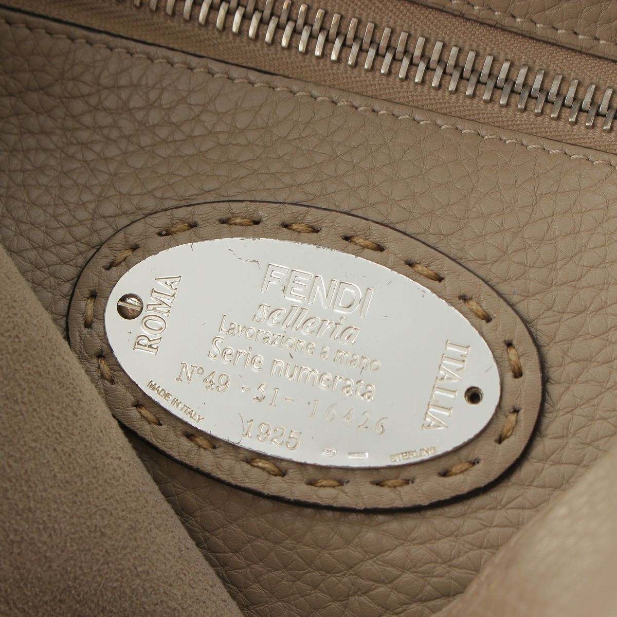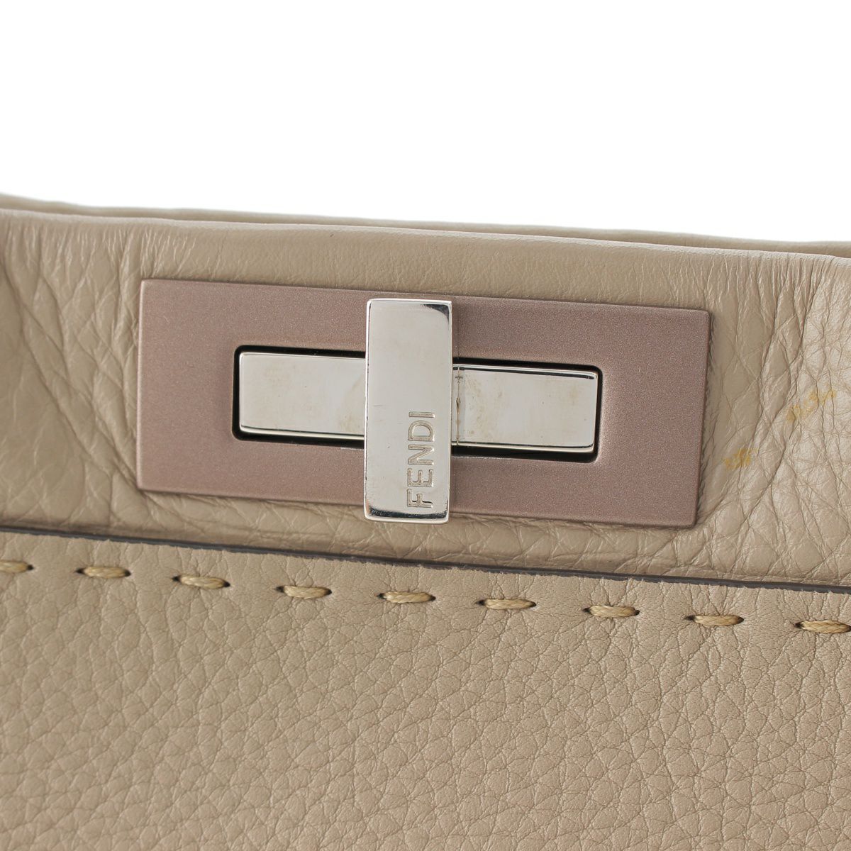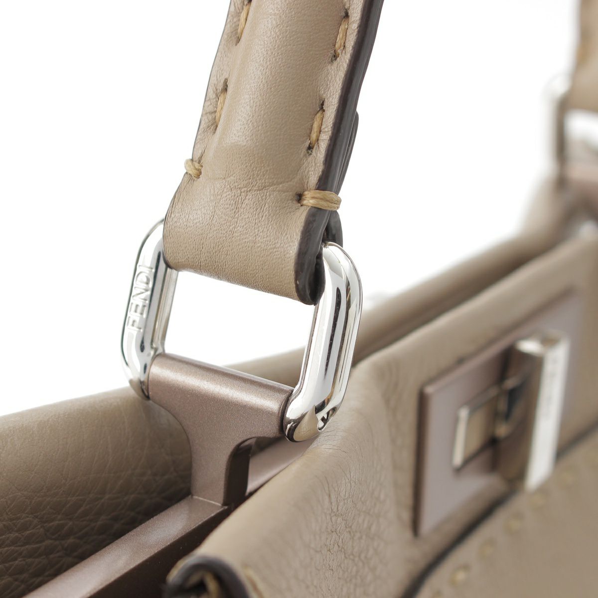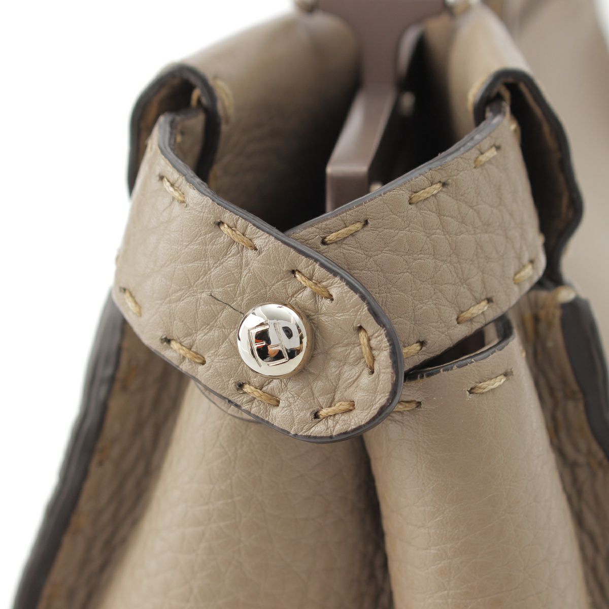 フェンディ セレリア ピーカブーレギュラー レザー 2WAY ショルダー ハンドバッグ シルバー金具 グレージュ