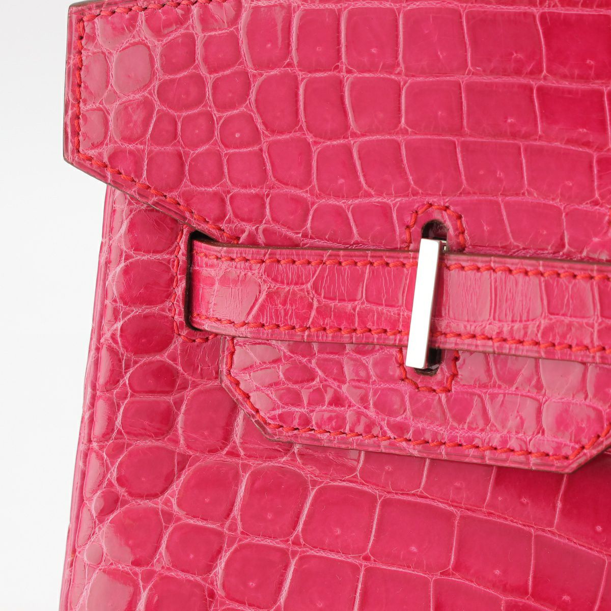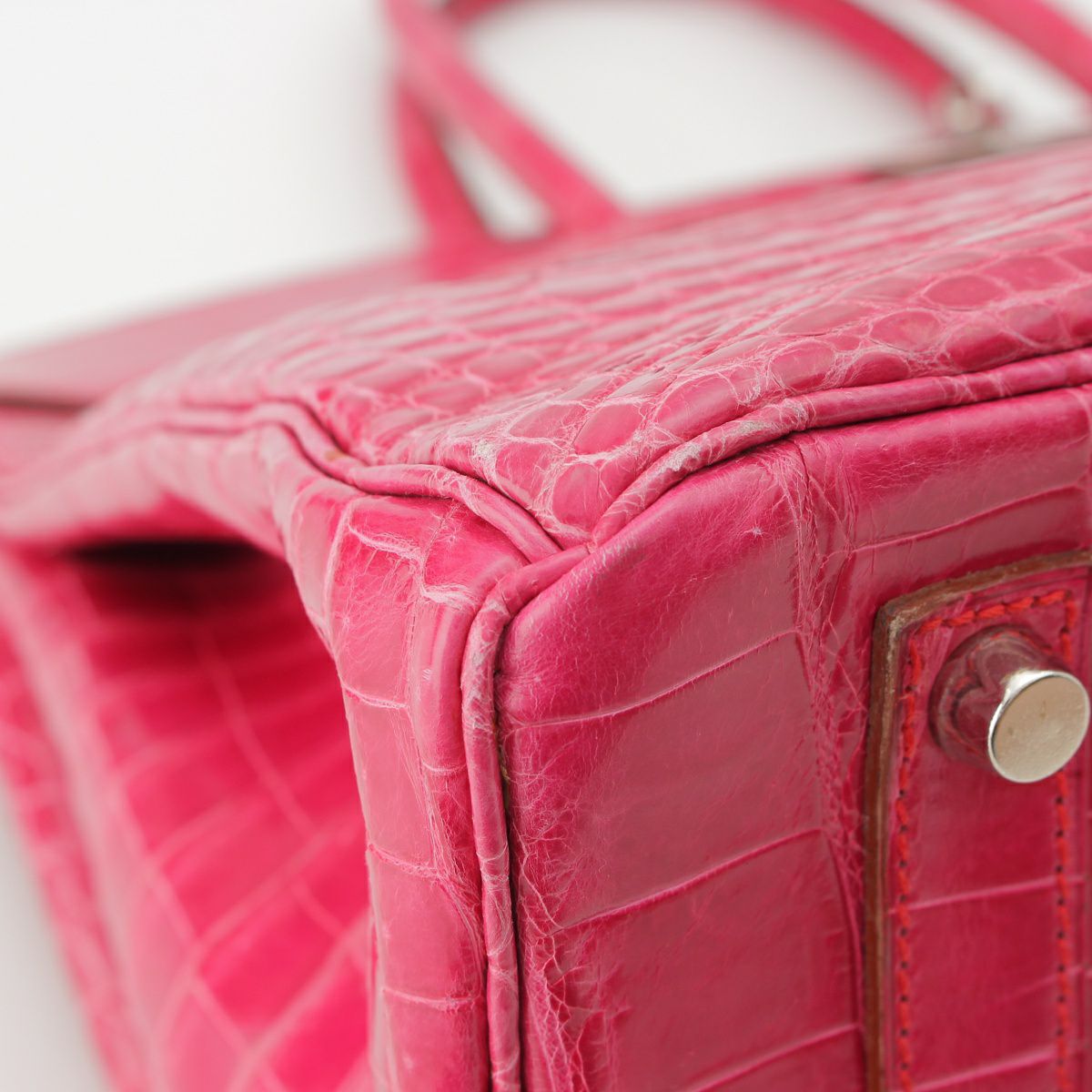エルメス □H刻印 バーキン35 ポロサス クロコ ハンドバッグ シルバー金具 フューシャピンク