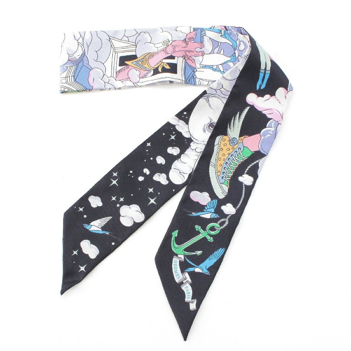 エルメス ツイリー シルク SUR MON NUAGE 私の雲 スカーフ ストール ショール ブラック