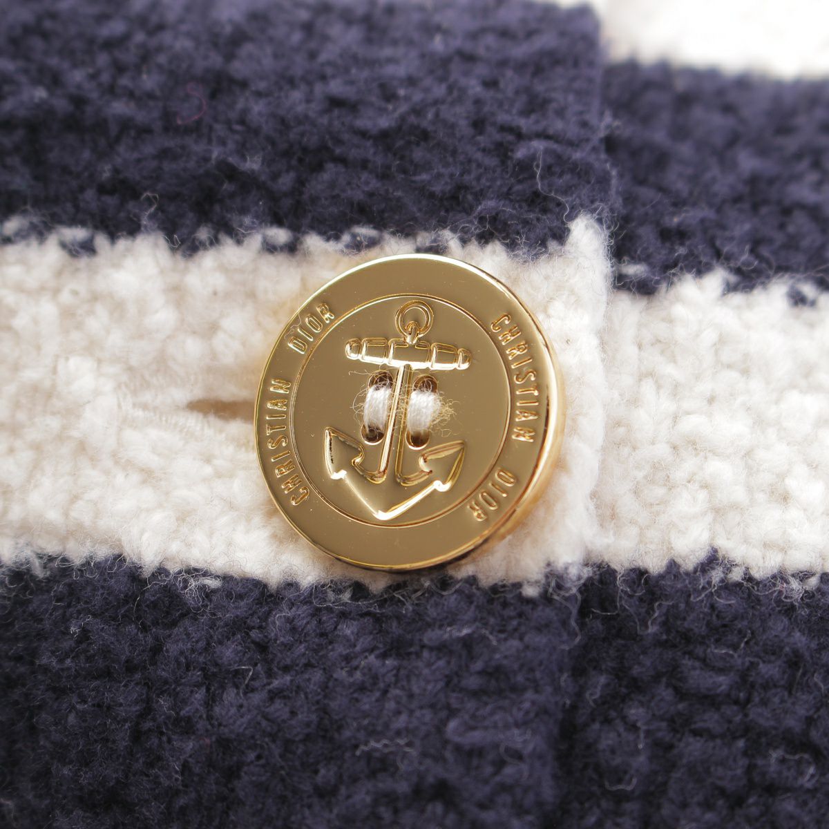 クリスチャンディオール コットン ニット ボーダー 6B ダブルブレスト テーラードジャケット 214V16SM711 ネイビー ホワイト 34