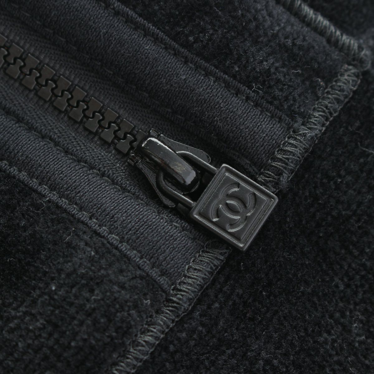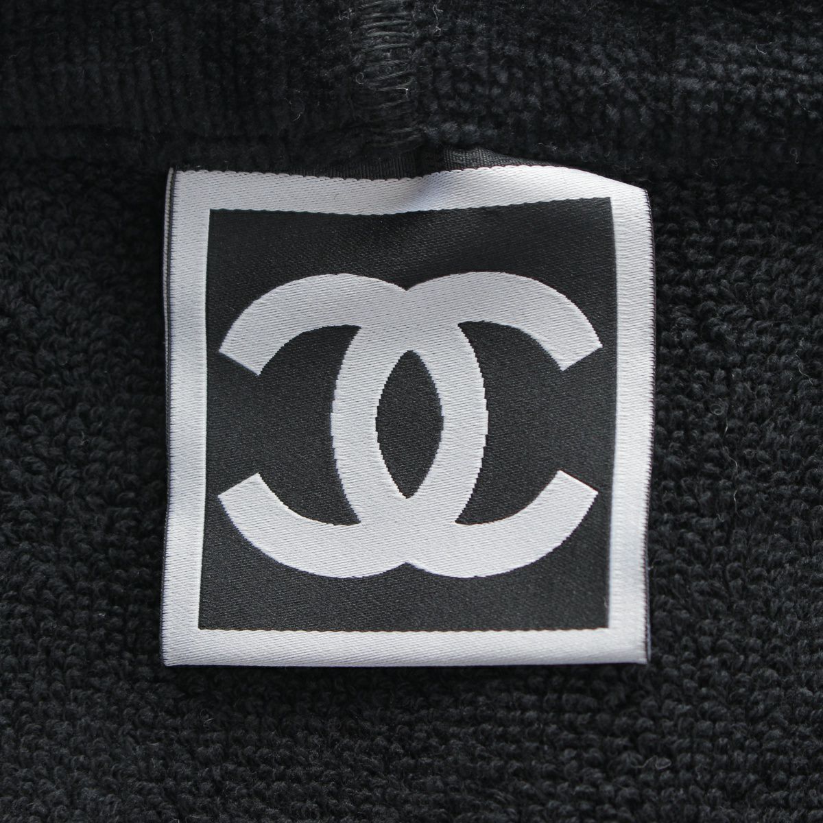 シャネル 09年 スポーツ コットン ココマーク パイル フード ベルト ガウン コート ローブ カーディガン トップス P35824 ブラック 38