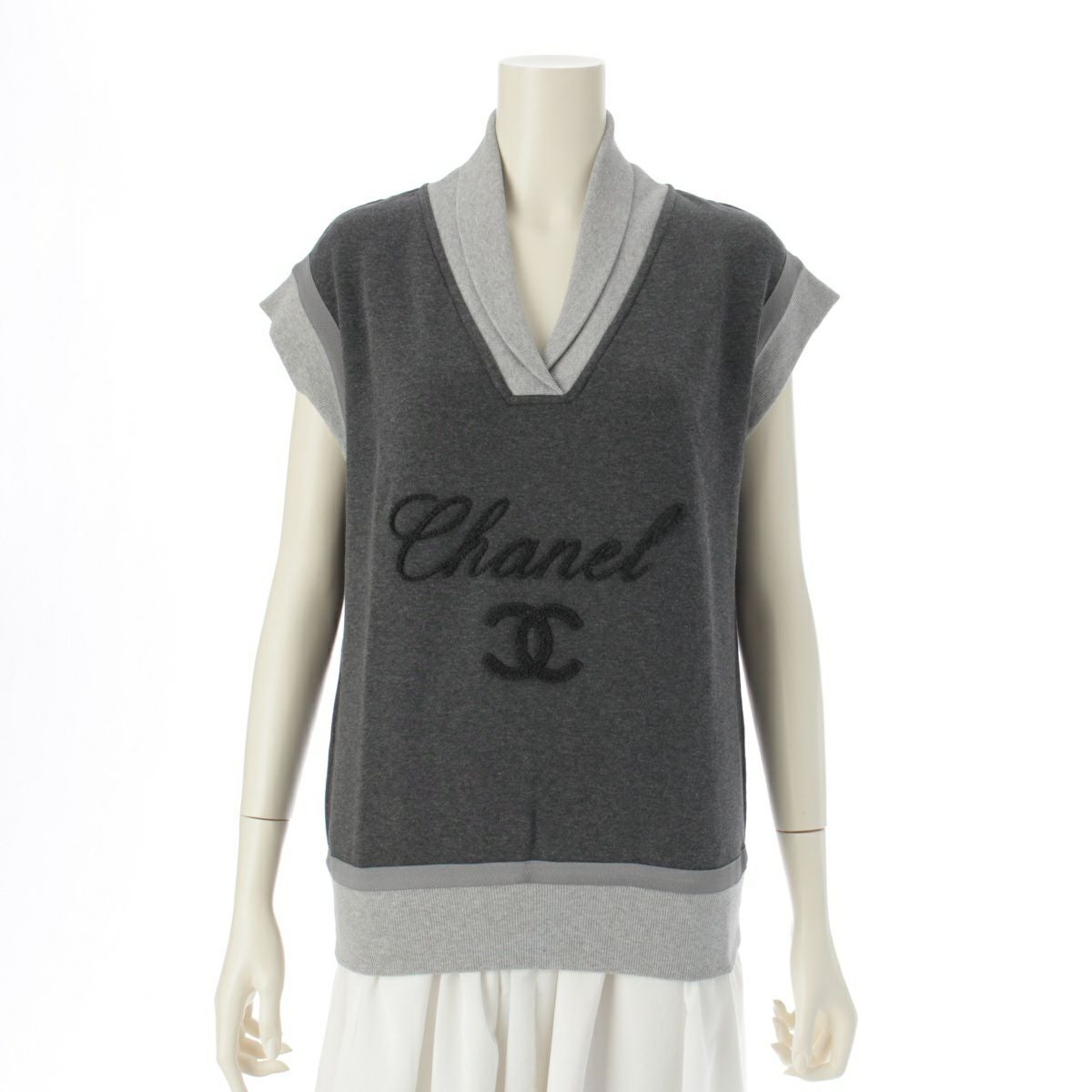 シャネル 10年 コットン ココマーク ロゴ ノースリーブ スウェット トレーナー トップス P38001 グレー 38